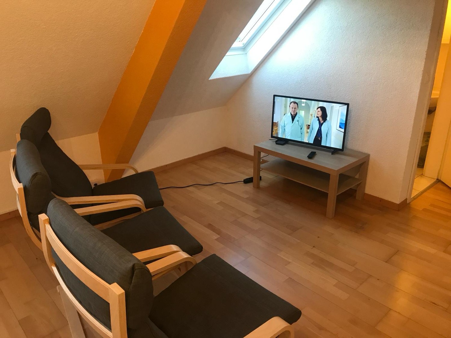 Im öffentlichen Bereich finden Sie auf jeder Etage eine Lounge mit TV-Geräten und Möglichkeit für Kontakte zu anderen Bewohner*innen.