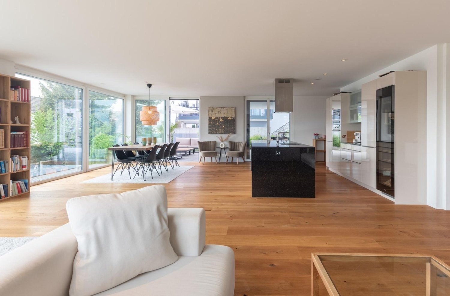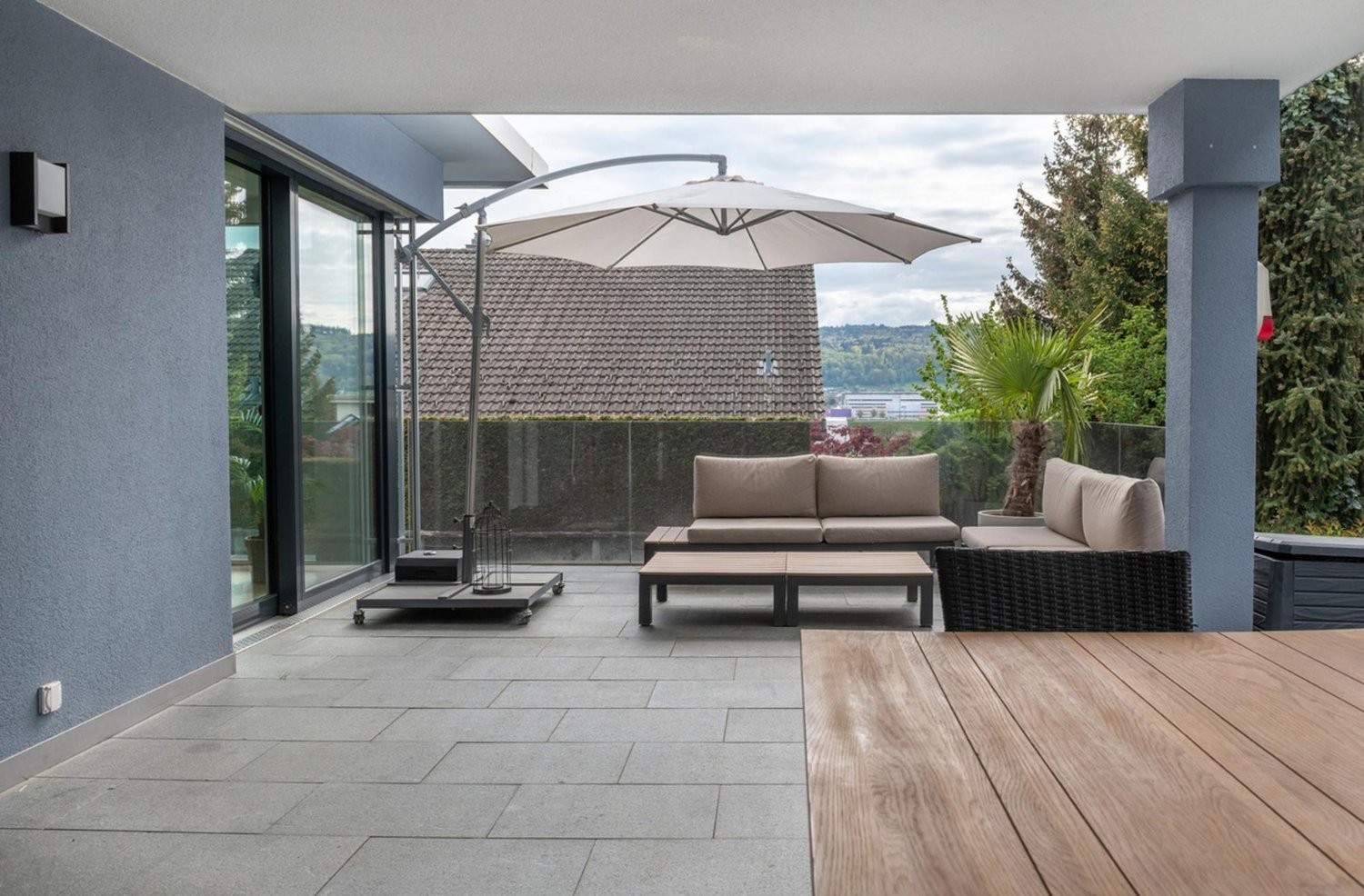 Edle, voll möblierte 4.5-Zimmer-Wohnung mit Terrasse und Garten, viel Licht und hochwertigem Interieur. Ruhige Lage, grosszügig und stilvoll. Nur 30 Minuten von Zürich entfernt, 230m², im Parterre, mit Lift, 1 Terrasse, Garten, Gartensitzplatz, 2 eigene Parkplätze, 2 eigene Garagen, Autobahneinfahrt in der Nähe. Inkl. Heizung, Strom, Wasser, Internet, TV (inkl. Anschluss und Abo), ...