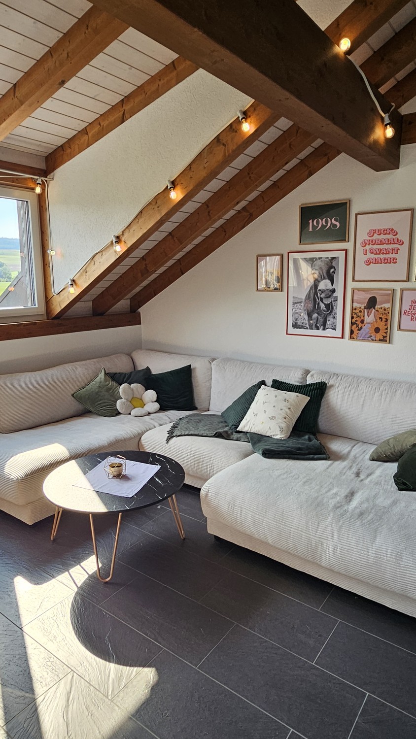 Ich (w, 27) suche eine:n neue:n Mitbewohner:in für eine 4,5-Zimmer Dachwohnung an ruhiger Lage in der Natur. 🌻