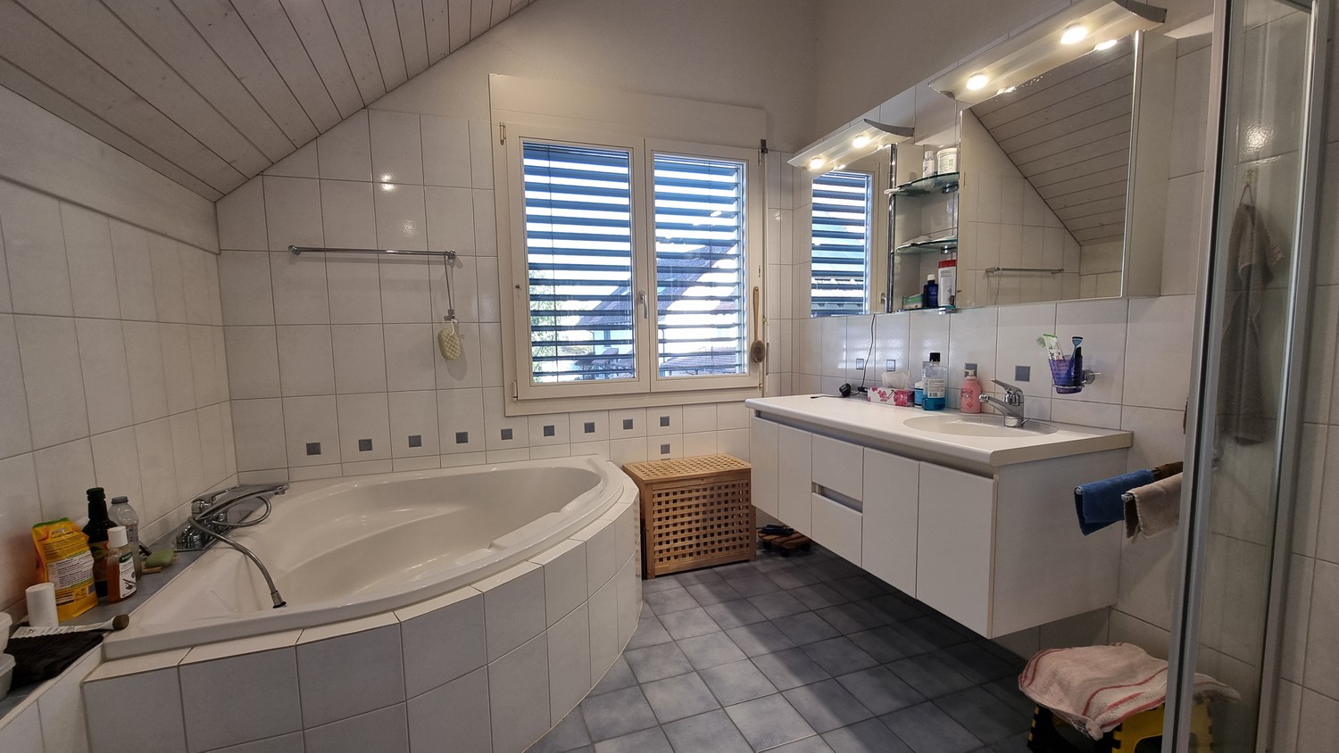Dieses gepflegte 5.5-Zimmer-Einfamilienhaus bietet eine Bruttowohnfläche von 150 m² auf einem 507 m² großen Grundstück und verfügt über ein großzügiges Disporaum im Untergeschoss. Die moderne Ausstattung umfasst Echtholzparkett, eine halb offene Küche mit Granitarbeitsplatte sowie ein Badezimmer mit Eckbadewanne. Das geräumige Elternschlafzimmer ist zusätzlich mit einer komfortablen Ankleide ausgestattet. Der neu umgebaute Carport wurde zur Garage mit einem darüberliegenden Balkon erweitert. Der großzügige Garten erstreckt sich über 320 m² und ist ein wahres Gartenparadies, ideal für entspannende Stunden im Freien. Die Zufahrt und der Garten bieten ein vielseitiges Raumangebot für verschiedene Freizeitaktivitäten. Das Haus ist mit einer hochwertigen CTA Erdwärmepumpe ausgestattet, die zusätzlich eine Kühlfunktion bietet. Die Immobilie verfügt über 1 Garagenplatz sowie 2 Außenparkplätze. Baujahr: 1999, Renovierungen abgeschlossen im 2024/25. Ideal für Familien und Hobbybegeisterte. Das Haus wurde vom Immobilienanbieter beurteilt. Es wird aber Privat verkauft auf Frühjahr/Sommer 2026. Bitte keine Makleranfragen!