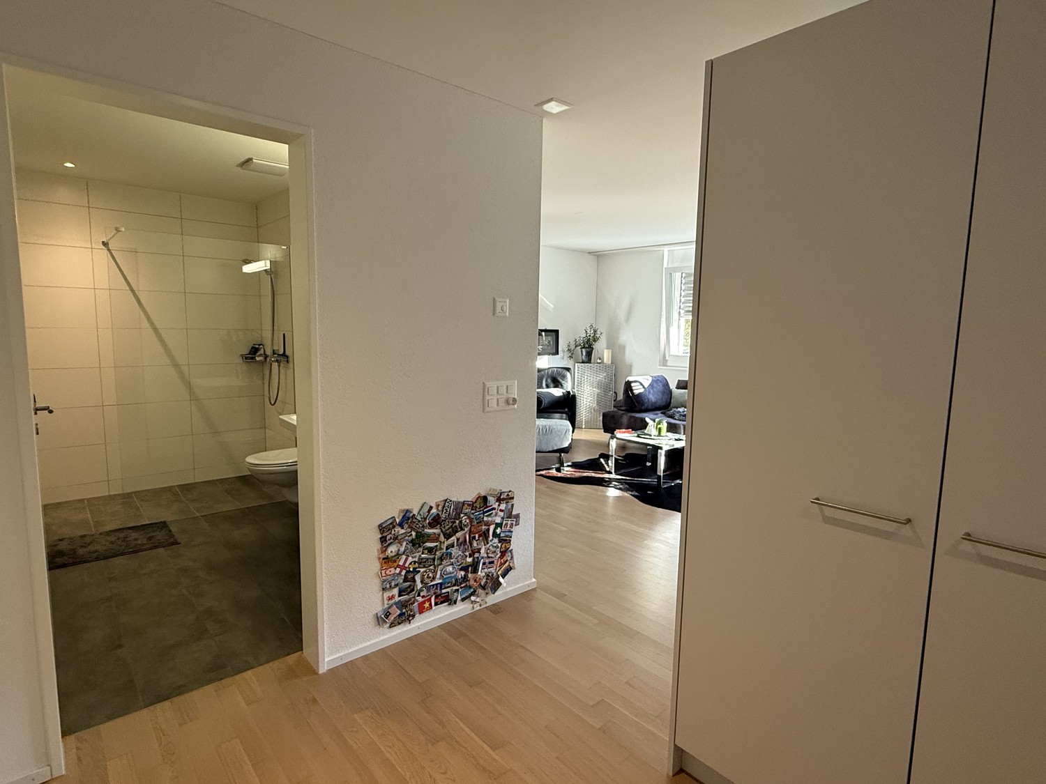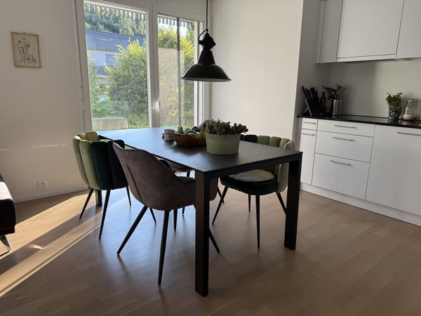 Die Wohnung befindet sich in ruhiger Lage, umgeben von Natur, und bietet dennoch eine gute Anbindung an Aarau und Lenzburg.