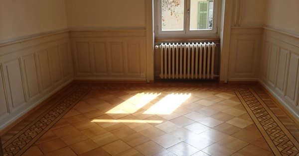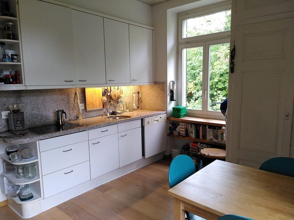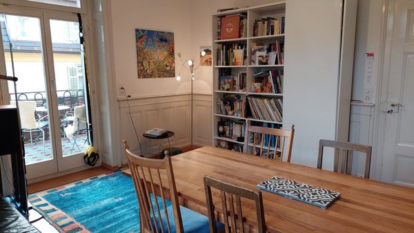 Das Zimmer ist hell, 15m2 und hat einen wunderschönen Parkettboden und Stuckaturen an der Decke. Du kannst deine eigenen Möbel bringen oder es (teil-) möbliert haben. In der ganzen Wohnung gibt es alte Parkettböden und Sicht ins Grüne. Das 5 Parteien-Haus steht in einem alten Quartier mit grossen Gärten und es ist sehr ruhig. Die Lage ist sehr zentral, zu Fuss in 12 min zum Bahnhof, Bushaltestelle in unmittelbarer Nähe. Mitbenützung von geräumiger Wohnküche, Ess- und Wohnzimmer, Bad, WC, Terrasse, Balkon und Garten. Bad und WC sind eher klein - dies war bis jetzt aber nie ein Problem.