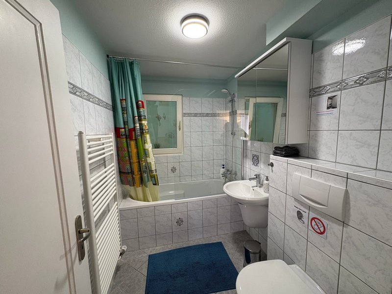 · Badezimmer mit Duschbadewanne und WC