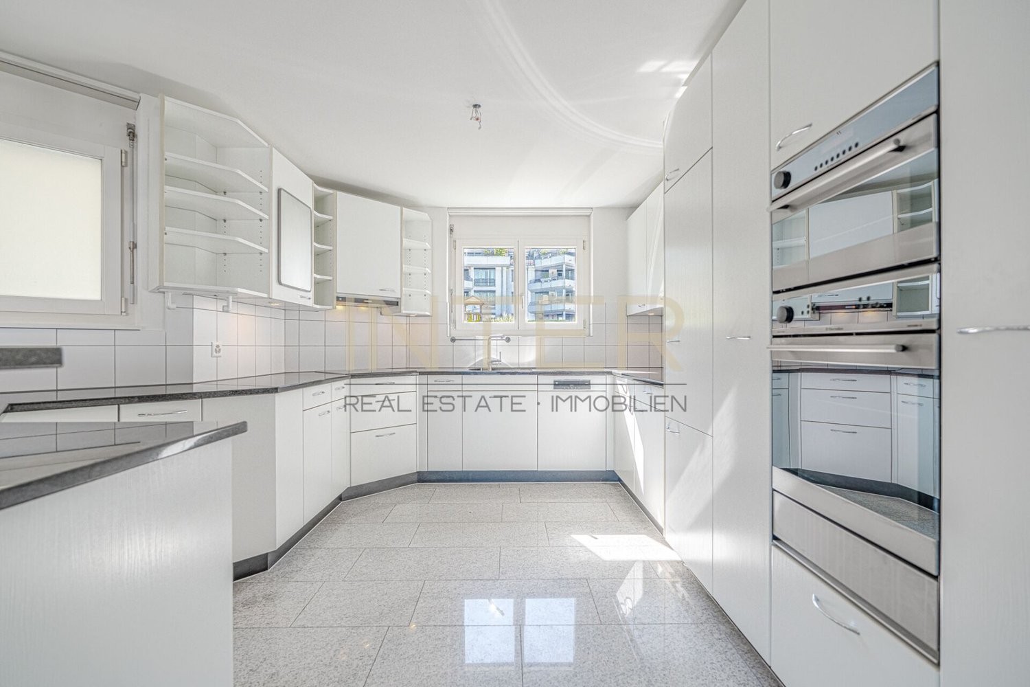 ein lichtdurchfluteter Wohn-/Essbereich mit Schwedenofen , eine hochwertige Küche mit Granitabdeckung , vier helle Zimmer und zwei Nasszellen - ergänzt durch ein Reduit mit Waschturm , Tiefkühler und Zentralstaubsauger .