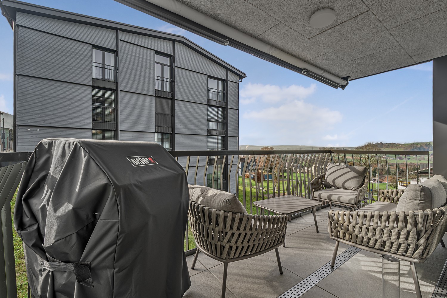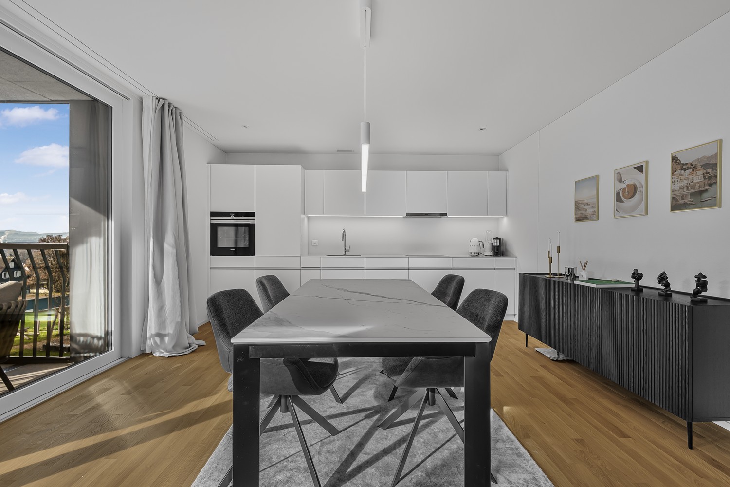 Diese neuwertige 2.5 Zimmer Eigentumswohnung im Erdgeschoss überzeugt durch eine zeitgemässe Architektur, einen sorgfältig geplanten Grundriss und ein ruhiges Wohnumfeld. Mit einer Wohnfläche von rund 64 m² bietet die Wohnung ein modernes, offenes Raumkonzept, das durch klare Linien, hochwertige Materialien und eine angenehm helle Atmosphäre geprägt ist.