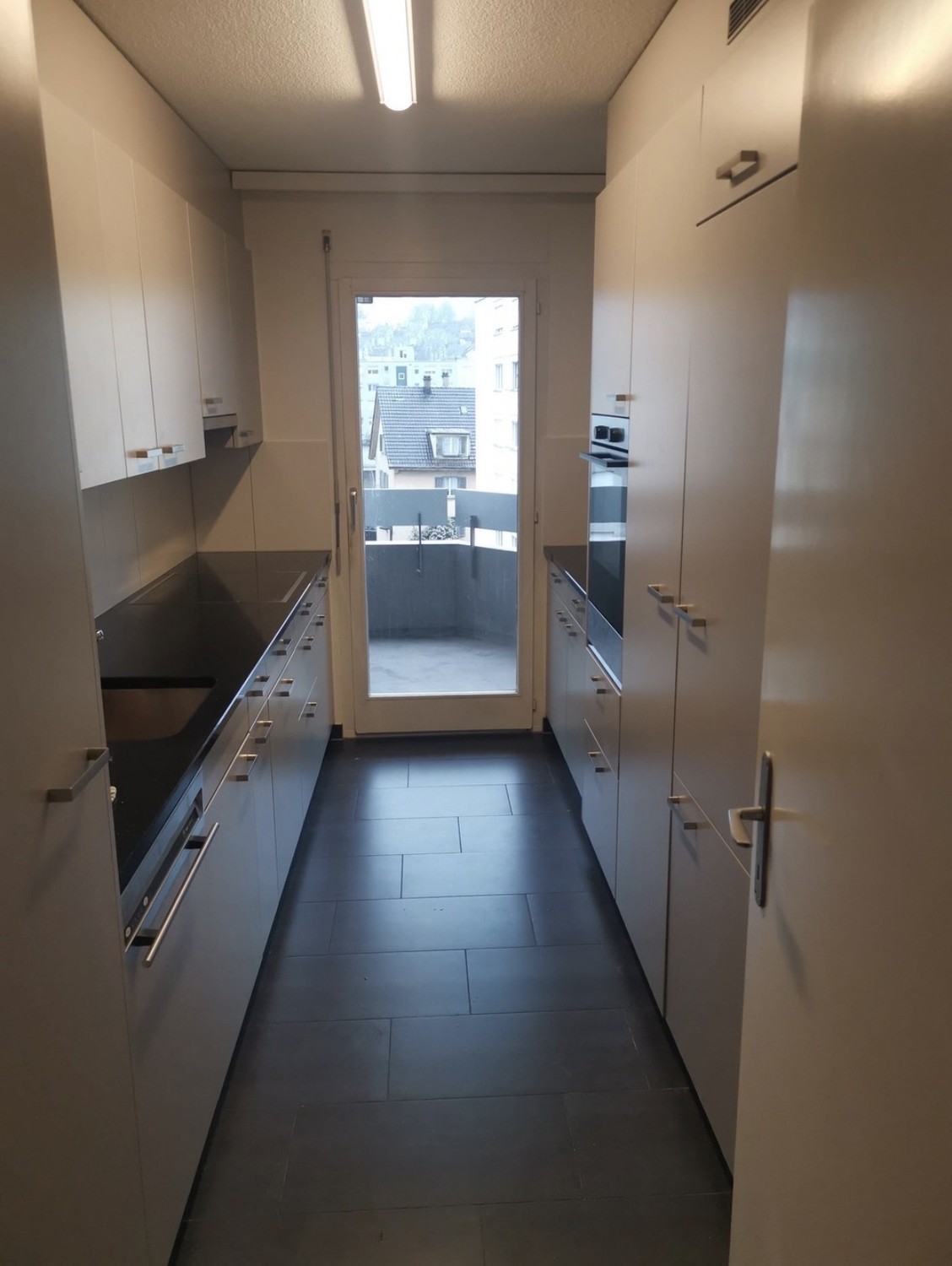 Die Wohnung befindet sich im 3. Stock und besteht aus einem hellen, grosszügigen Wohnzimmer mit Balkon, Essbereich, Küche mit Spülmaschine, zwei WCs und 4 Schlafzimmern.