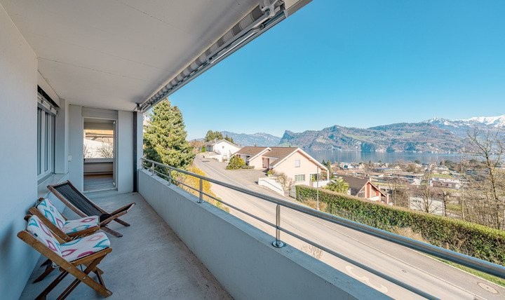 Berg- und Seesicht im Doppelpack ? 5.5-Zimmer-Wohnung in HergiswilIn unmittelbarer Nähe zum Vierwaldstättersee verkaufen wir eine attraktive 5.5-Zimmer-Eigentumswohnung, die mit viel Platz, einer gemütlichen Wohnatmosphäre und einer traumhaften Aussicht überzeugt.Die 113 m² Wohnfläche verteilen sich auf fünf Zimmer sowie einen grosszügigen Wohn- und Essbereich mit Cheminée. Hier öffnet sich der direkte Zugang zum gedeckten Balkon, von dem aus sich ein spektakulärer Blick auf das Nidwaldner Bergpanorama und den Vierwaldstättersee bietet.Der gepflegte Nassbereich verfügt über einen praktischen Waschturm und wird durch eine separate Toilette ergänzt. In der Verkaufsdokumentation (Seite 10) finden sich zudem Vorschläge für einen möglichen Umbau, um die Wohnung individuell anzupassen.Praktische Nebenräume wie ein eigener Keller, eine gemeinschaftliche Waschküche und ein Veloraum sorgen für zusätzlichen Komfort. Eine Einzelgarage kann bei Bedarf dazu erworben werden.Die Lage punktet durch ihre ideale Anbindung: Öffentliche Verkehrsmittel befinden sich in unmittelbarer Nähe, wodurch Luzern schnell erreichbar ist. Eine Wohnung, die Aussicht, Lage und Wohnqualität perfekt vereint.Interessiert? Weitere Informationen, Bilder und einen virtuellen Rundgang sowie Besichtigungsmöglichkeiten finden Sie unter: propertyowner.ch/de/immobilien/25-10937