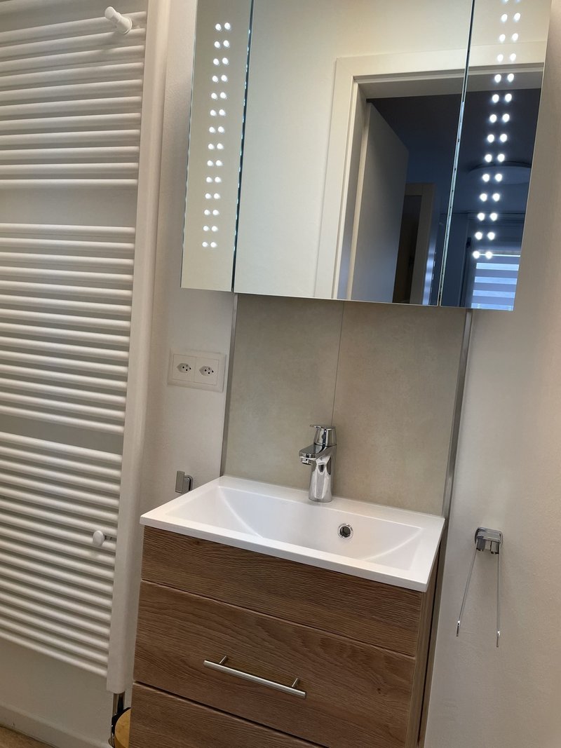 Die Wohnung wurde in 2023 komplett entkernt, renoviert und neu eingerichtet. Sie verfügt über ein Badezimmer mit Dusche, eine Teeküche und ein Wohn-und Schlafzimmer, Das Bett kann sowohl als Couch, als auch als Einzel- und Doppelbett genutzt werden. Sie hat einen großen Fernseher für gemütliche Abende zu Hause. Fernsehen und WLAN ist im Preis enthalten. Eine Waschmaschine steht im gemeinsamen Trocken- und Waschraum zu Verfügung. Ein PKW-Stellplatz kann ebenfalls zur Verfügung gestellt werden. Im Kellerraum gibt es die Möglichkeit die Skiausrüstung abzustellen. Insgesamt können in der Wohnung bis zu 2 Personen übernachten. Ideal ist sie für 1 Erwachsenen mit eventuell gelegentlichen Besuch einer zweiten Person.