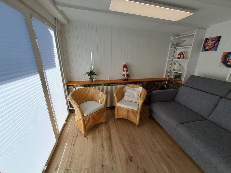 Die Wohnung verfügt über ein Wannenbad, Küche, Wohn-und Esszimmer, Schlafzimmer und einen Wintergarten/Studio mit Schlafsofa. Die Wohnung wurde 2024 saniert und mit neuen Möbeln ausgestattet. Jetzt erwartet Sie eine wunderschöne, moderne und lichtdurchflutete Wohnung, die komplett eingerichtet und ausgestattet ist. Sie hat einen großen Fernseher und einen Elektrokamin für gemütliche Abende zu Hause. Fernsehen und WLAN ist im Preis enthalten. Eine Waschmaschine steht im gemeinsamen Trocken- und Waschraum zu Verfügung. Ein PKW-Stellplatz kann ebenfalls zur Verfügung gestellt werden. Im Kellerraum gibt es die Möglichkeit die Skiausrüstung abzustellen. Insgesamt können in der Wohnung bis zu 6 Personen übernachten. Ideal ist sie für zB 2 Erwachsene und zwei Kinder.