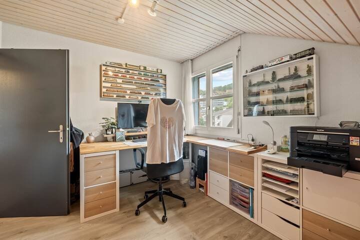 Ergänzt wird das Platzangebot durch praktische Nebenräume wie Keller, Waschküche und Velokeller. Ein besonderes Highlight ist der riesige Estrich, der entweder als grosszügiger Stauraum genutzt oder mit entsprechendem Ausbaupotenzial in zusätzlichen Wohn- oder Hobbyraum verwandelt werden kann.