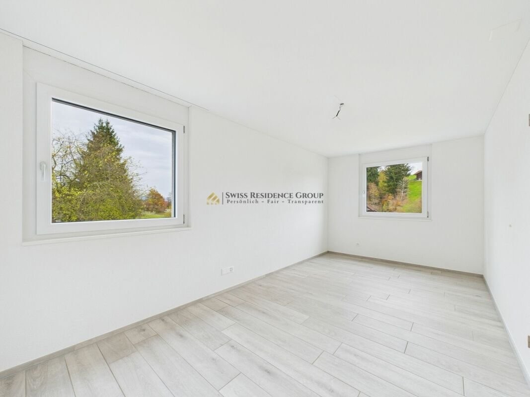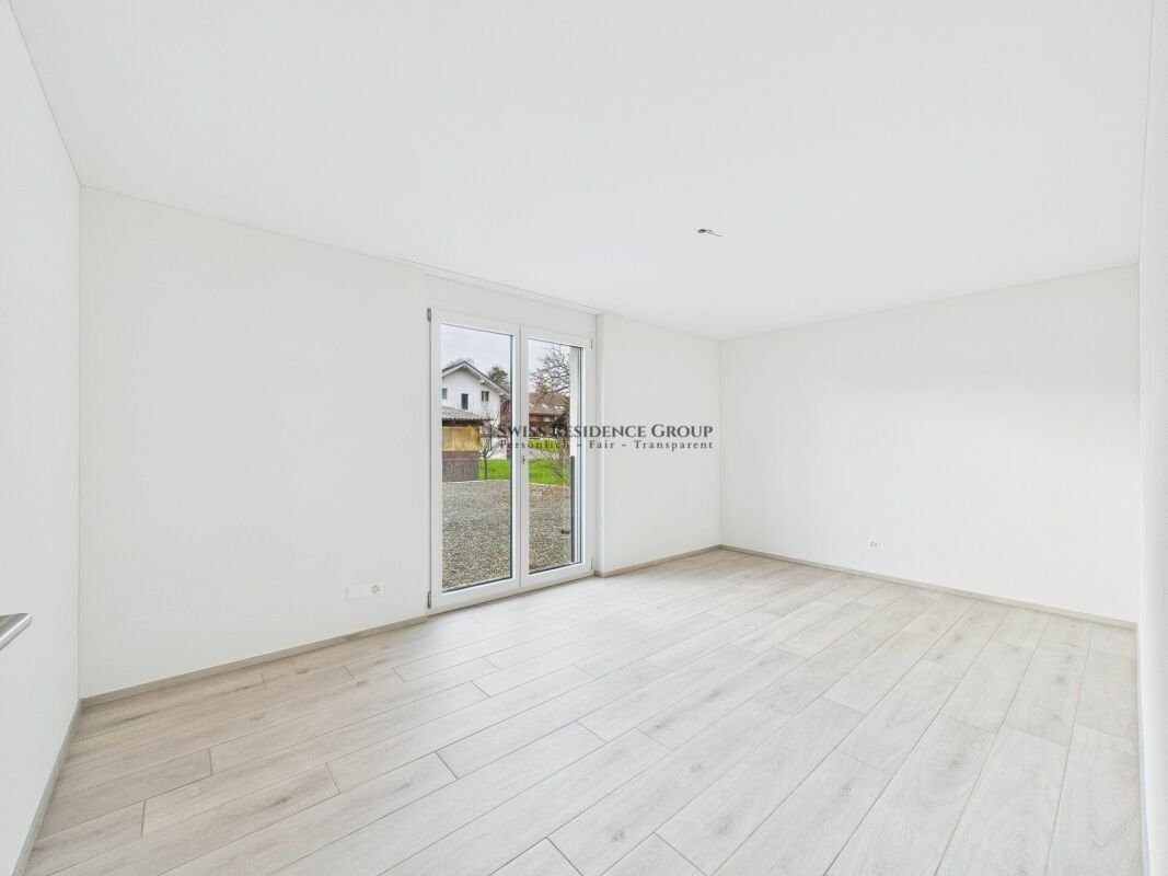 Im Erdgeschoss erwartet Sie eine grosszügige, moderne Küche mit hochwertigen MIELE-Geräten und angrenzender Vorratskammer. Das lichtdurchflutete Wohnzimmer bietet direkten Zugang zur Terrasse, von der aus Sie einen herrlichen Blick ins Grüne geniessen - ideal für entspannte Stunden oder gesellige Abende.