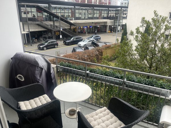 Charming, fully furnished and bright 2.5-room apartment in Zug, directly at the train station. Including all utilities and Wifi. Private parking space for additional CHF 150 per month available upon request.