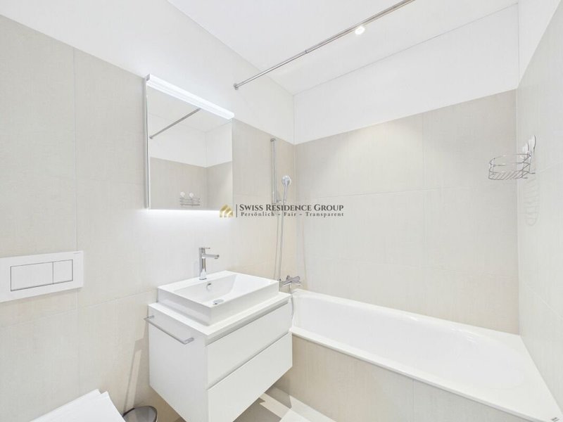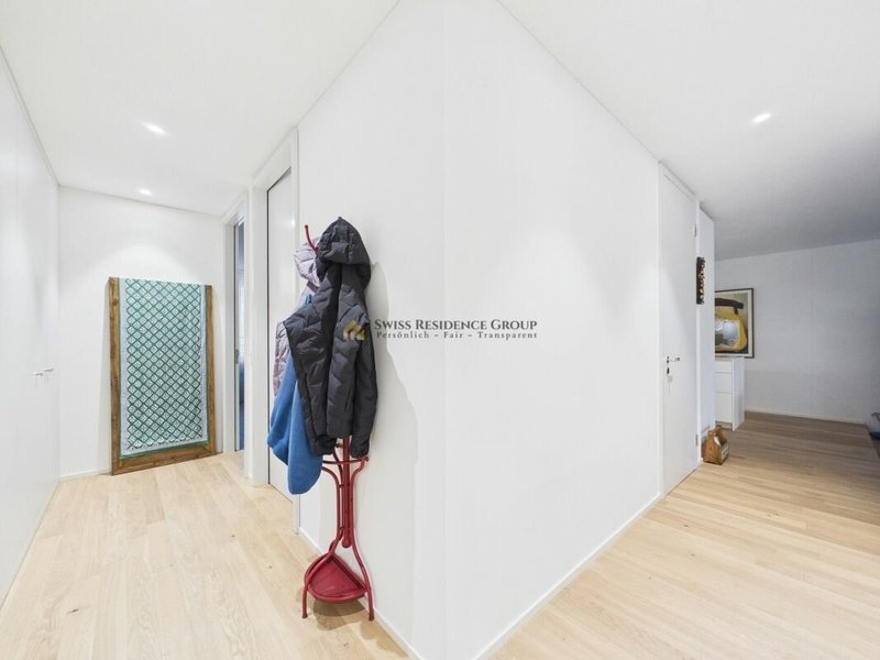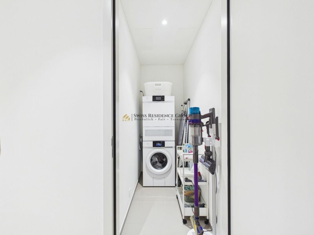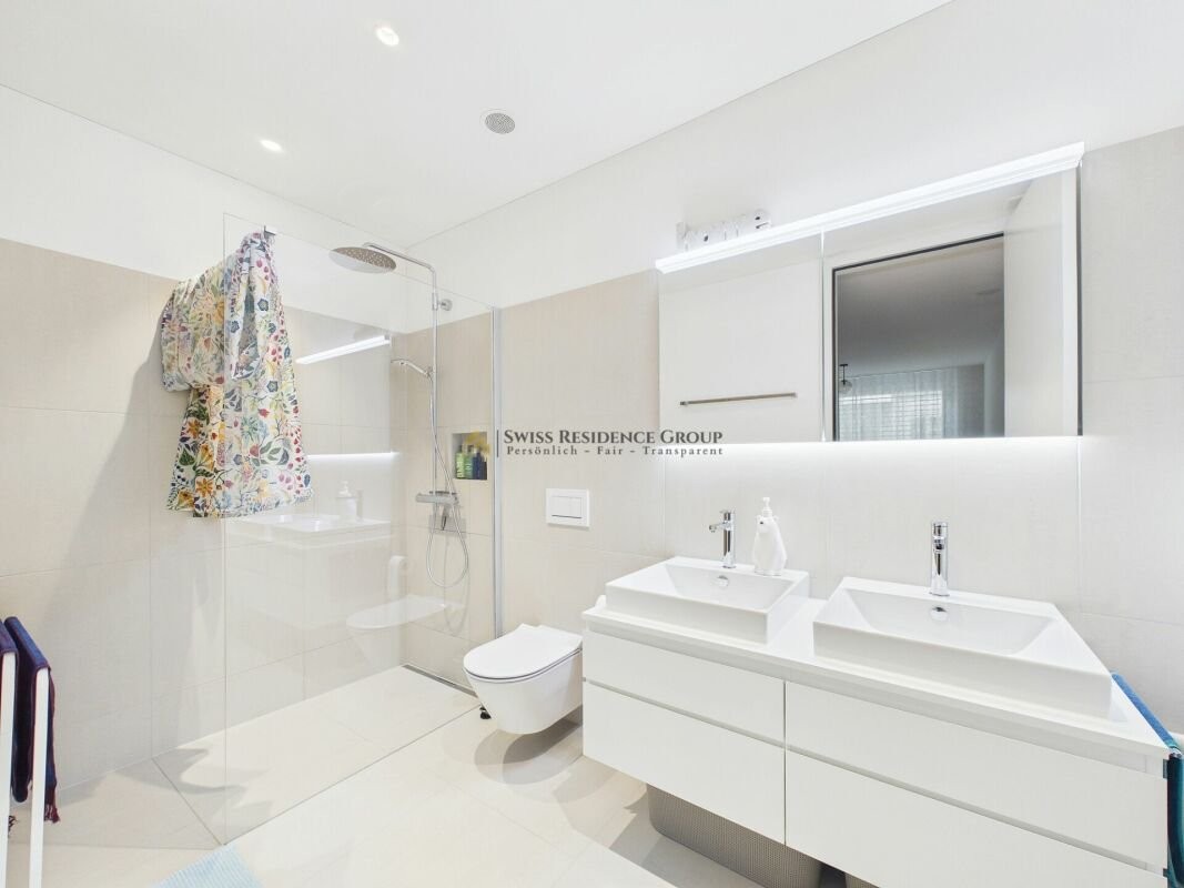 Die Wohnung verfügt über zwei stilvolle Badezimmer, einen eigenen Waschraum sowie einen grosszügigen Keller, der zusätzlichen Stauraum bietet. Die Innenräume sind zeitlos und hell gestaltet und unterstreichen den modernen Charakter der Liegenschaft.