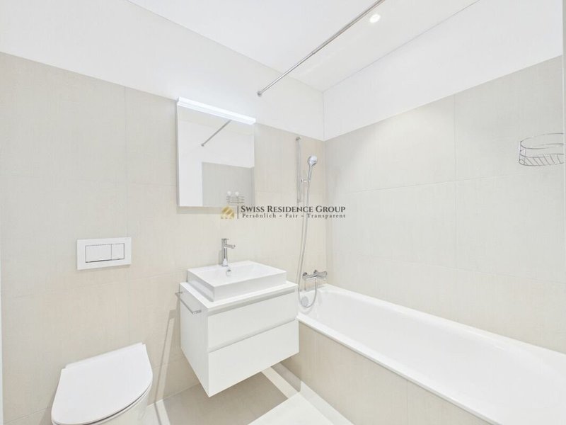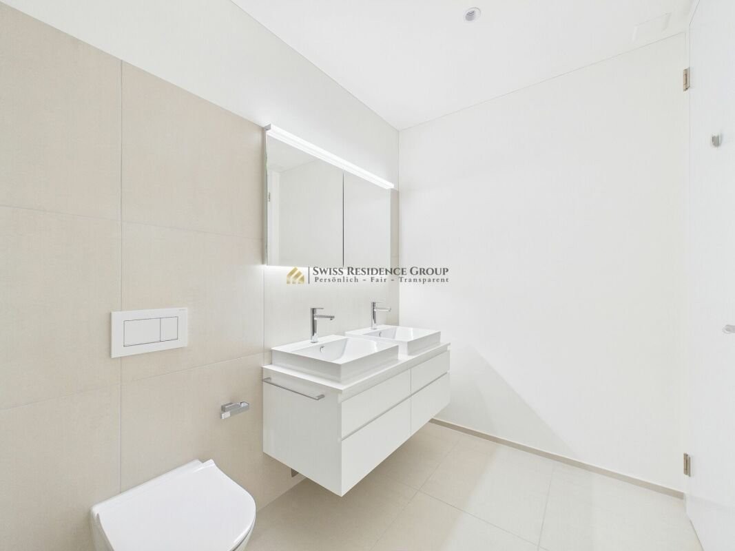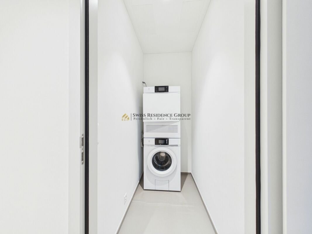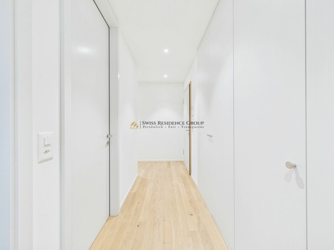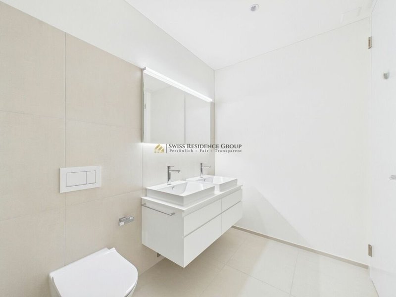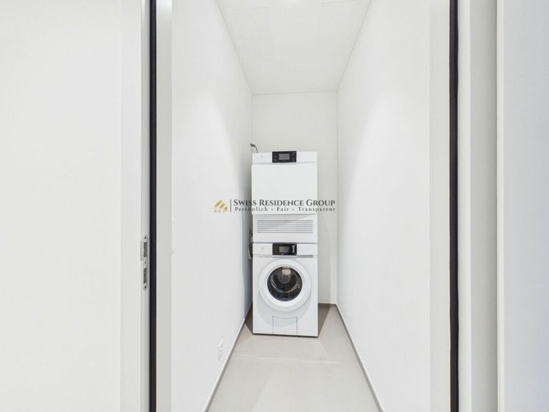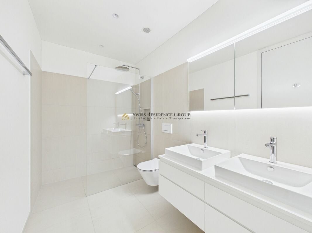 Die Wohnung verfügt über zwei stilvolle Badezimmer, einen eigenen Waschraum sowie einen grosszügigen Keller, der zusätzlichen Stauraum bietet. Die Innenräume sind zeitlos und hell gestaltet und unterstreichen den modernen Charakter der Liegenschaft.