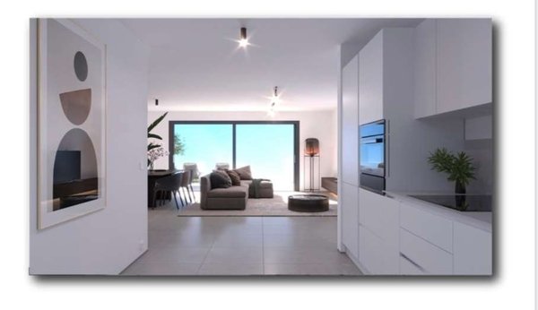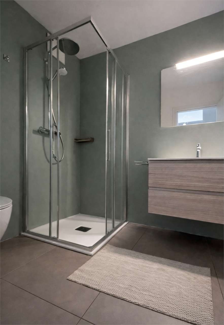 La cucina open space moderna e funzionale dotata di elettrodomestici di qualità. La camera matrimoniale è spaziosa e accogliente, mentre il bagno con doccia presenta finiture di pregio e un design essenziale.