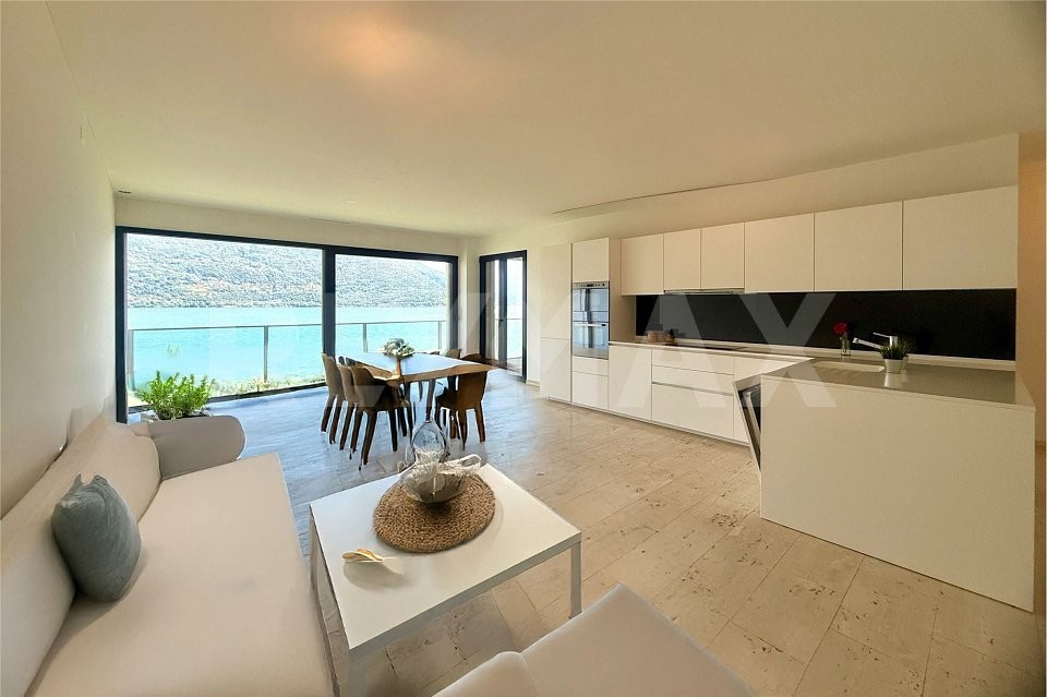 L'appartamento si trova in una zona verde con una splendida vista sul lago. L'appartamento ha una superficie abitabile di circa 129 m2 e una terrazza di circa 28 m2. È progettato in stile open space e dispone di un'ampia zona giorno e pranzo con cucina a vista. La cucina è dotata di elettrodomestici e materiali di alta qualità e offre un ampio spazio di archiviazione e superficie di lavoro.