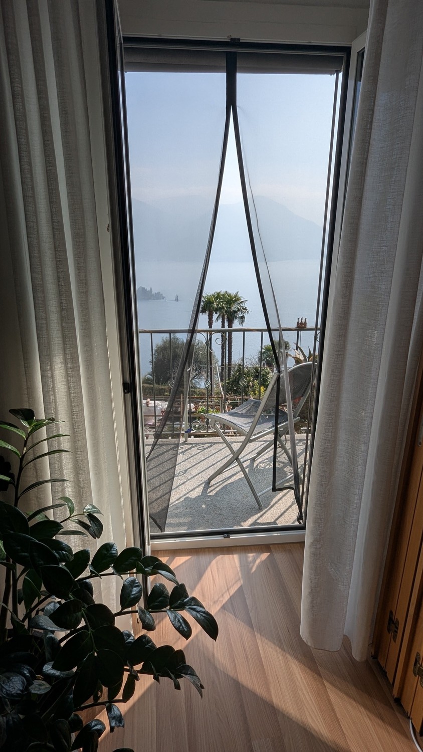 Die Wohnung hat einen direkten Eingang. Vom Wohn- und Schlafzimmer aus sieht man auf den Lago Maggiore mit den Brissago Inseln. Die Wohnung verfügt 1 Wohnzimmer, 1 Esszimmer, 2 Schlafzimmer, 2 Badezimmer, 3 kleine Balkone und eine Terrasse auf der Küchenseite.