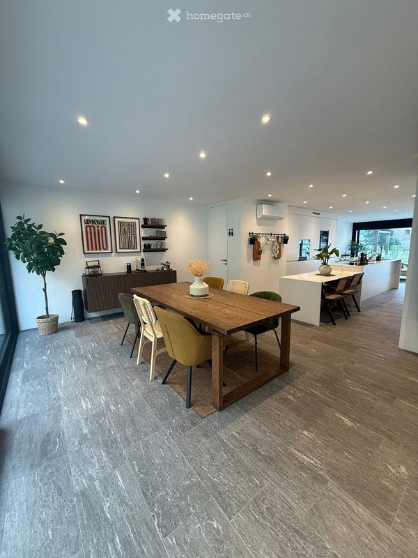 Ruhige, sonnige Lage, sehr helle Räume, moderne Architektur und einer der grössten Gärten der Überbauung. 142 m² Wohnfläche plus diverse Zusatzräume.