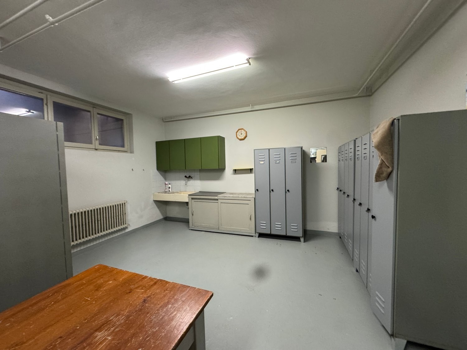 • il semicantinato: (altezza utile sotto le travi 2.35 m, sotto soletta 2.80 m) che si estende al disotto di tutto l’edificio comprendente il magazzino, il rifugio PC, il locale mensa, locale spogliatoio, servizio igienico e locale riscaldamento a gas. La porta d’ingresso laterale dalla rampa