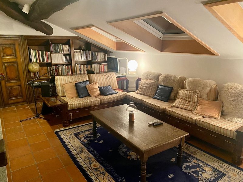 Zona giorno: ingresso accogliente, cucina semi-abitabile, locale lavanderia completamente attrezzato, zona giorno con camino, meraviglioso tavolo e grandi velux che inondano di luce naturale l’ambiente, con accesso diretto alla terrazza che regala una vista aperta e garantisce totale privacy.