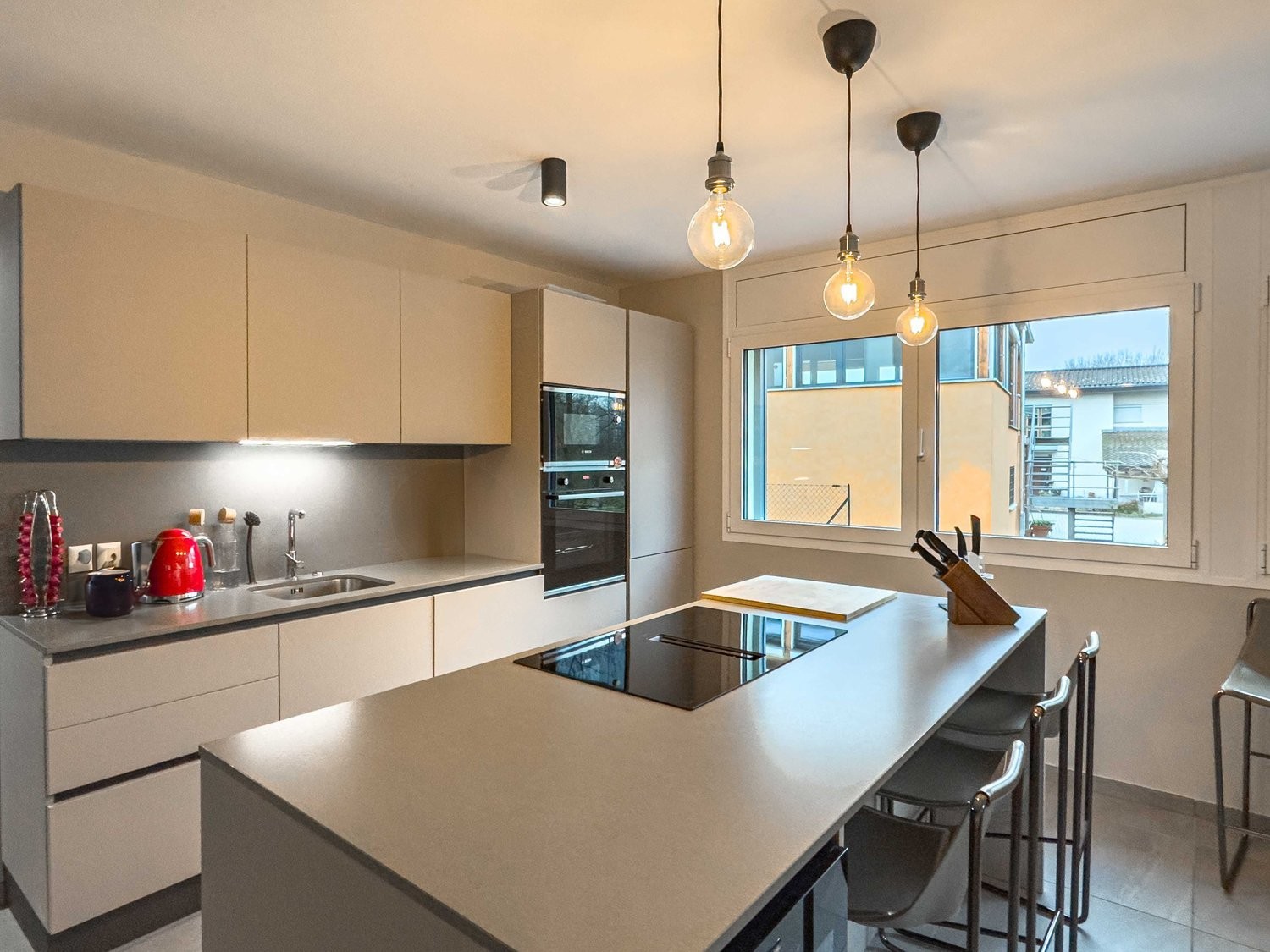 Situato al primo ed ultimo piano , l’appartamento è composto da: ingresso con un pratico guardaroba, luminoso soggiorno con cucina a vista arredata con elettrodomestici moderni di qualità alta, camera padronale con disimpegno e bagno privato, altre 2 camere, un bagno completo e una lavanderia. Il salone e la cucina condividono l’accesso ad una terrazza.