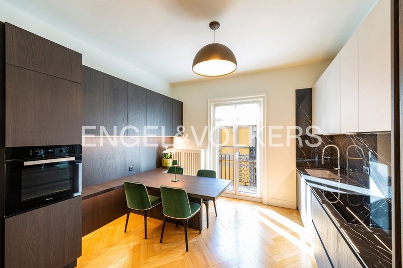 Das Ambiente ist edel und stilvoll, eingerichtet mit Möbeln von DOM Edizione und gestaltet von der Architektin und Interior Designerin Alessia Garibaldi, die Design und Funktionalität perfekt miteinander vereint hat. Die Wohnung wird nur mit dem Kauf der Möblierung vermietet (Preis auf Anfrage).