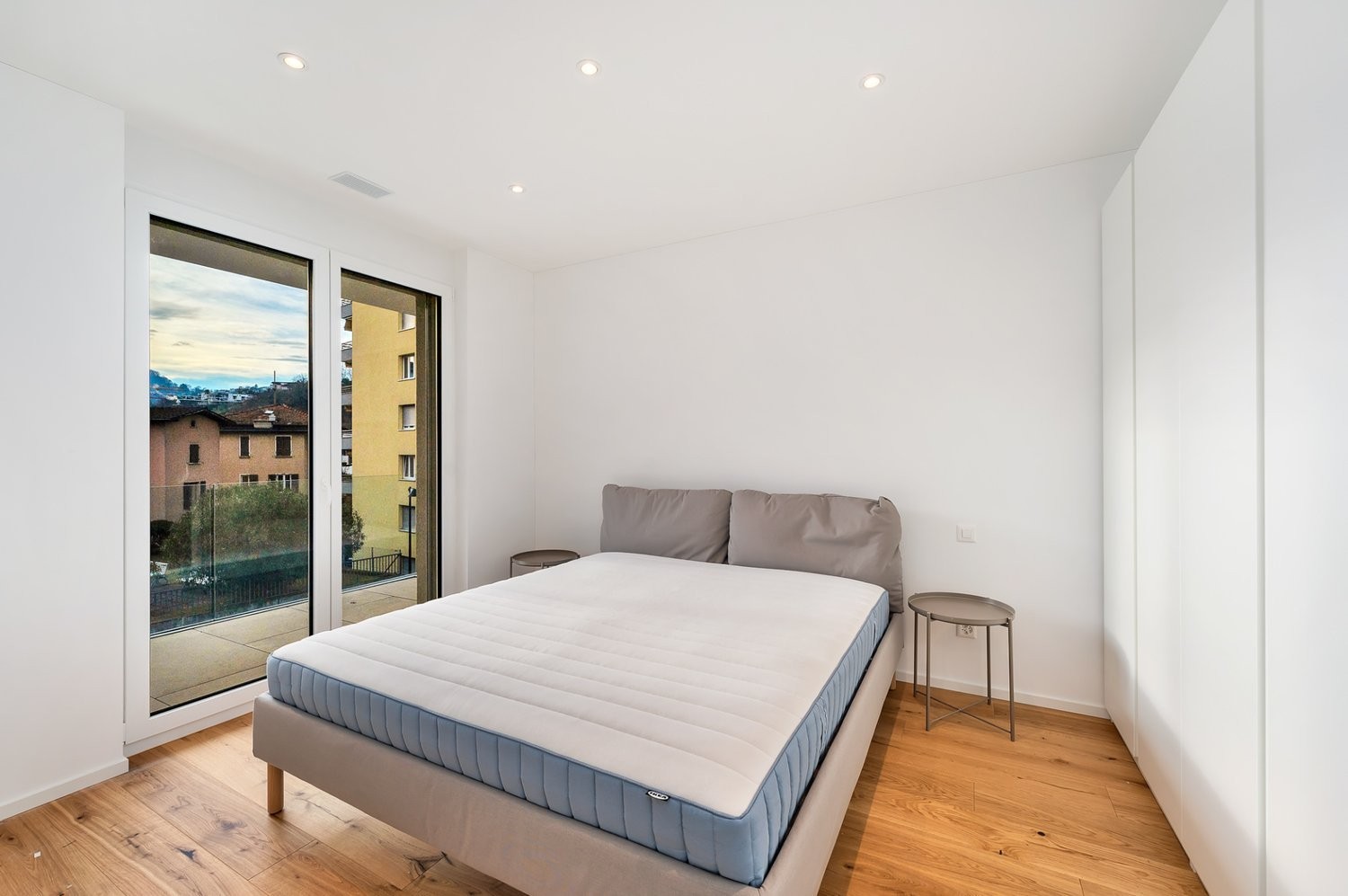 Proponiamo in affitto un bel appartamento di 25 locali completamente ammobiliato situato in una nuovissima residenza a Paradiso a solo pochi minuti dai servize e dallo svincolo stradale.