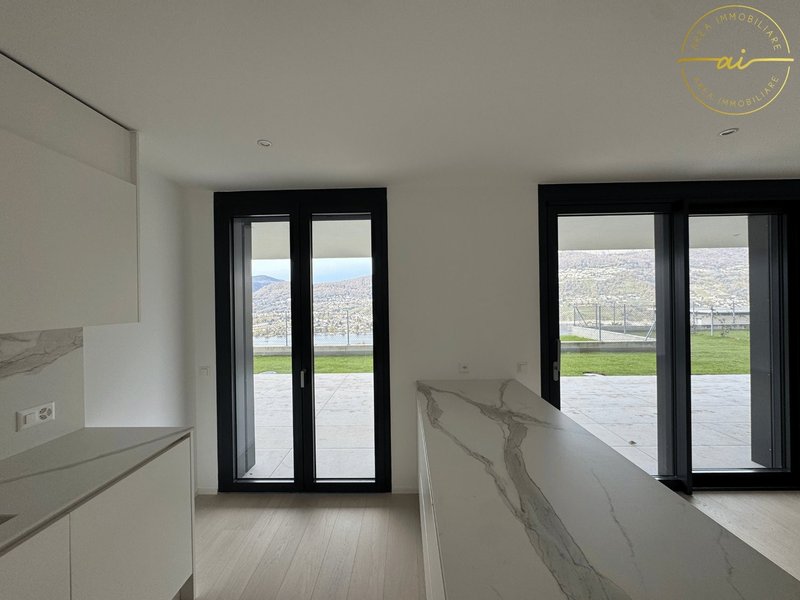 Proponiamo in affitto nuovo ed esclusivo appartamento di 4.5 locali con vista lago a Collina D’oro; situato al piano terra dell’edificio B della nuova Residenza T-Lake in costruzione.