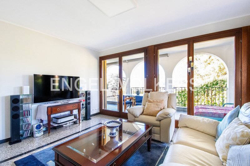 Grosse 2.5-Zimmerwohnung im 2. Stock eines sehr schönen klassischen und repräsentativen Anwesens an sonniger und ruhiger Lage in Collina d'Oro. Dank grosser Fenster ist die Wohnung lichtdurchflutet. Die Wohnung verfügt über eine grosse überdachte Terrasse mit Blick auf die Hügel, die die ganze Wohnung umrahmt. Die Wohnung ist wie folgt aufgeteilt: separates helles Wohnzimmer, die offene Küche im Esszimmer und das Schlafzimmer gegenüber dem Bad mit grosser Dusche. Von allen Bereichen der Wohnung ist es möglich auf die Terrasse zu gelangen. Ein Keller und ein Parkplatz in der Garage sind im Angebot mit inbegriffen.