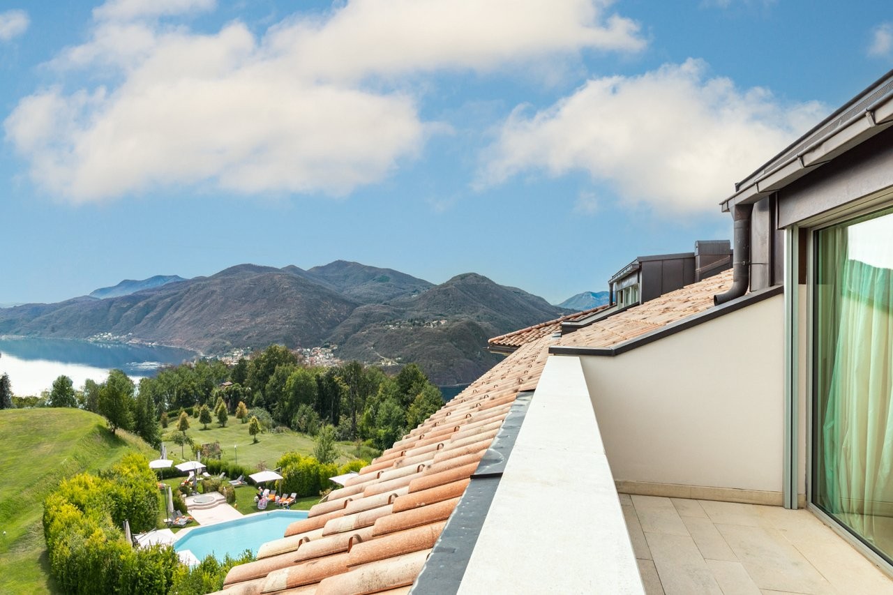 Un resort di lusso inserito in un contesto naturale magnifico, vedute panoramiche a perdita d'occhio delle Alpi e del lago, servizi di alto livello, strutture sportive a disposizione dei suoi residenti, servizi alberghieri su richiesta e arte del buon vivere sono queste le caratteristiche salienti del Resort Collina d'Oro di Agra. L'appartamento duplex 606 606 S di cui è parte si caratterizza per la sua superficie importante, l' eleganza dei suoi ambienti ampi e luminosi e la privacy che offre.