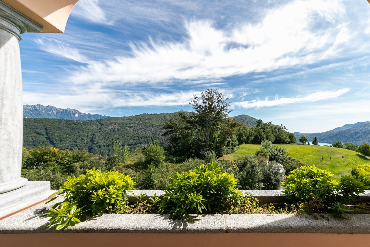 Le salon et la chambre à coucher principale s'ouvrent sur une belle loggia qui s'étend sur toute la façade de l'appartement et qui garantit une vue de carte postale à couper le souffle sur le lac et les Alpes.