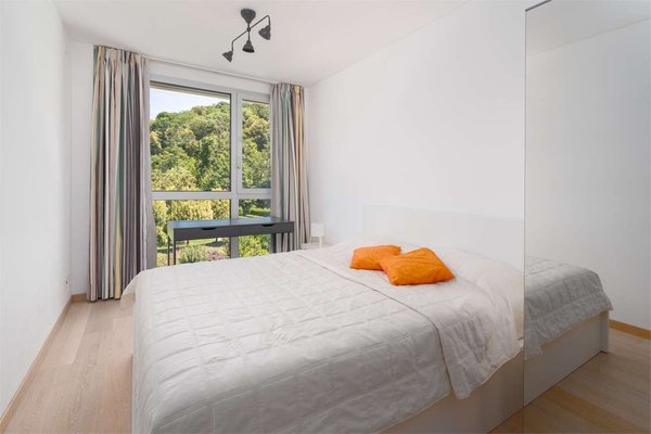 In Lugano-Muzzano, in a unique location directly overlooking the lake and adjacent to a protected natural area, a stylish furnished apartment is available for rent for a 10-month period ideal as a holiday home.