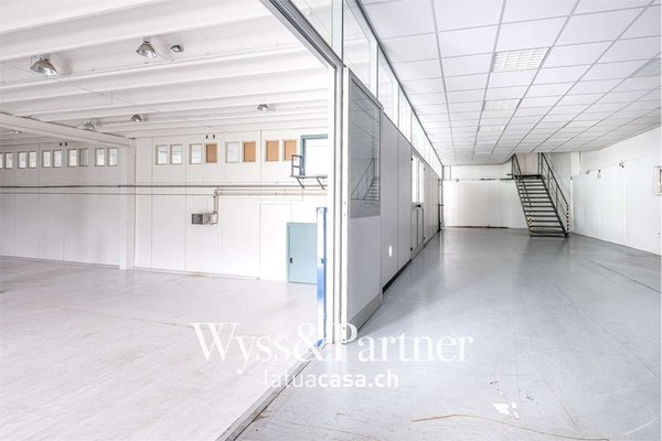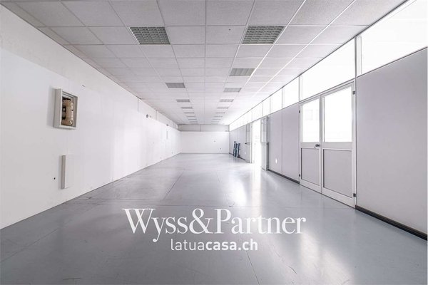 Bioggio, nella zona industriale con facile accesso ad ogni tipo di mezzo di trasporto, proponiamo in affitto ampia superficie commerciale/uffici con possibilità di suddivisione degli spazi interni.