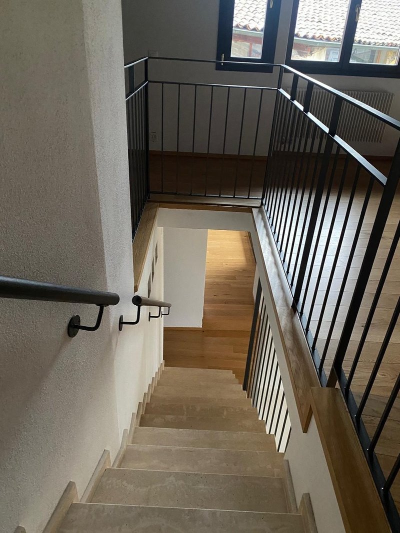 Gli interni sono così suddivisi: entrata con atrio indipendente, un primo servizio, salendo le scale sulla destra si trova il grande salone sala da pranzo con accesso tramite delle ampie porte finestre alla caratteristica loggia/terrazza, salendo le scale sul grazioso soppalco, troviamo un ulteriore locale che può essere adibito a studio/camera, una spaziosissima e moderna cucina compresa di tutti gli elettrodomestici e un ulteriore accesso ad un'incantevole loggia. Dall'altro lato dell'appartamento si trova la lavanderia, un servizio completo che serve le prime due camere da letto e la camera padronale con bagno en suite.