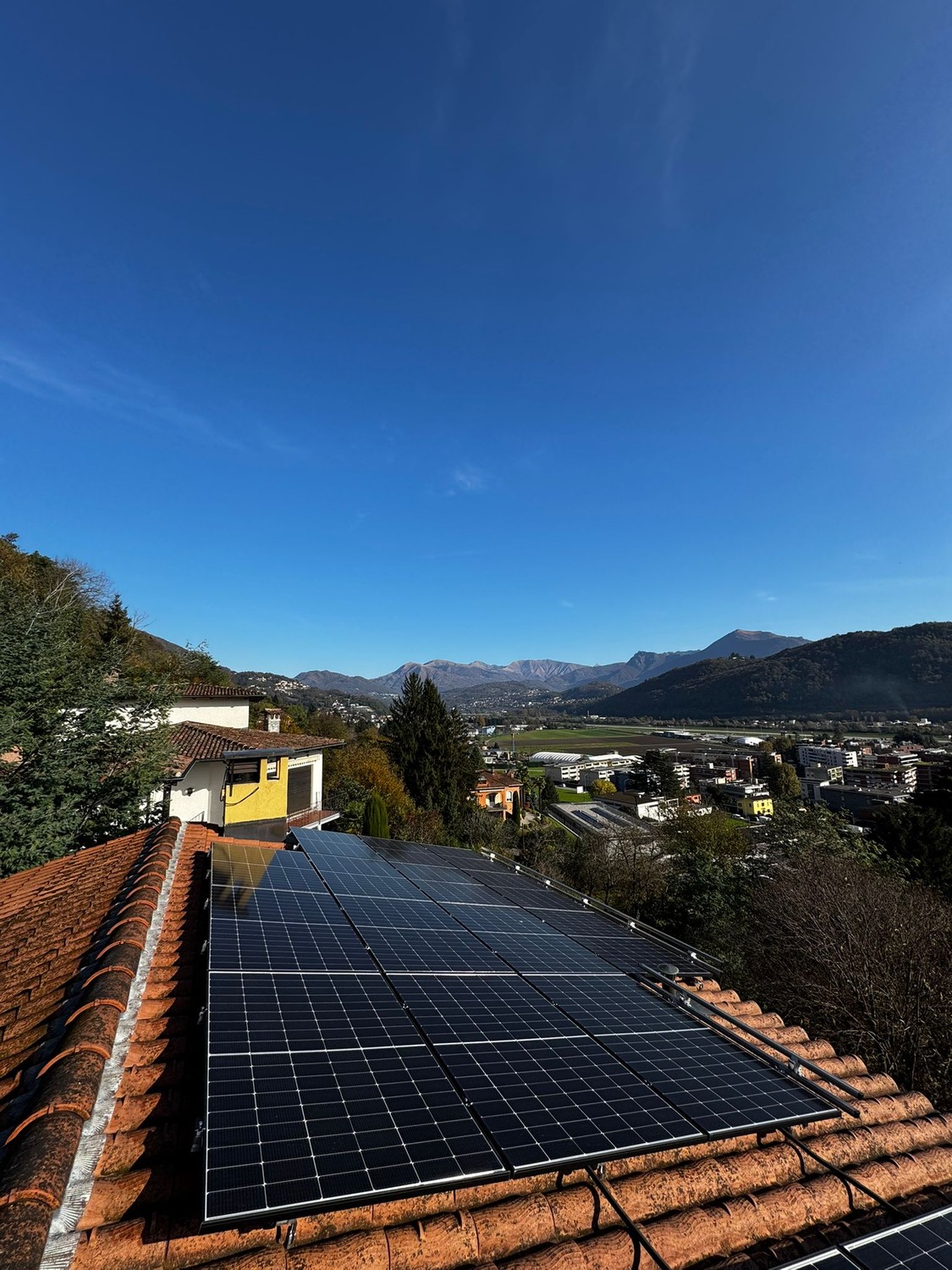 Für eine 2 ½ Z-Wohnung ist die Wohnfläche von 87 m² fast übertrieben. Sie entspricht eher einer 3 ½ Z-Wohnung. Da wird es nie zu eng. Und für grosse Verbraucher gibt es günstigen Strom vom Solardach (Im Sommer bis zu 100 kW/Tag). Aussicht bietet die einmalige Panoramalage vom Seebecken bis hinauf zum Vedeggiotal. Wobei zugleich die ganze Infrastruktur in unmittelbarer Nähe ist. Und dank Privatstrasse besteht gute Nachbardistanz und höchste Privacy.