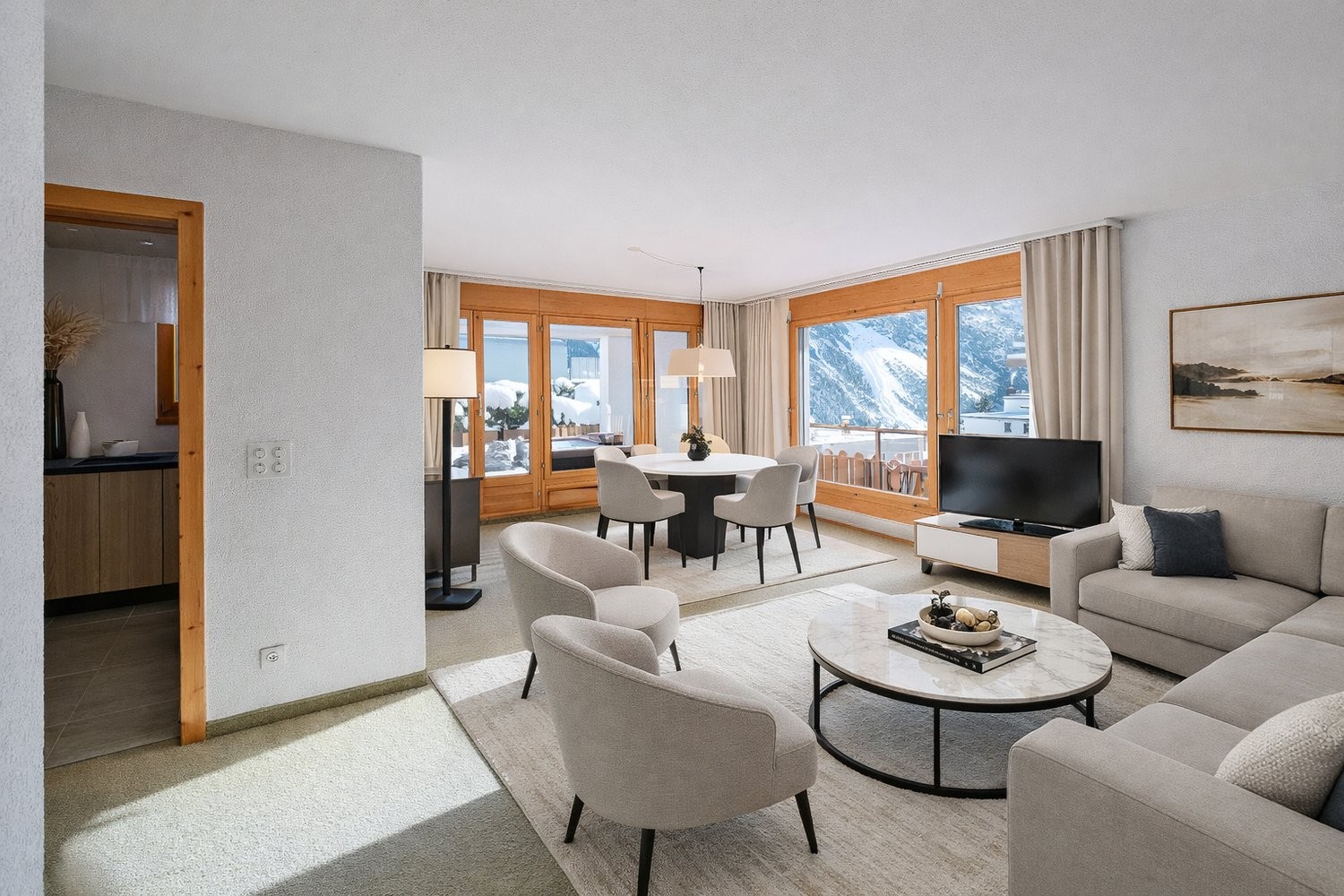 Das Platzangebot umfasst rund 74 m² Gesamtnutzfläche, ergänzt durch eine aussergewöhnlich grosszügige Balkon- und Terrassenfläche von insgesamt ca. 48 m². Hier geniessen Sie Sonne, Ruhe und einen unverbaubaren Blick auf die umliegende Bergwelt ? zu jeder Jahreszeit.