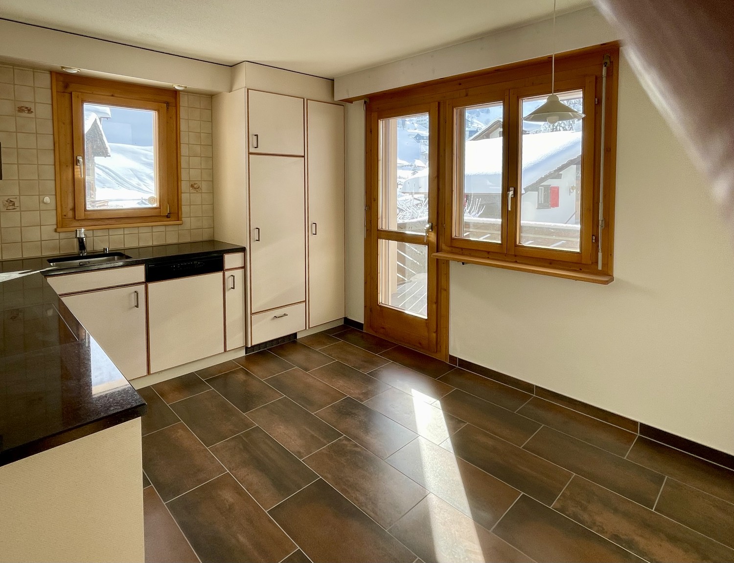 Speziell ist die praktische Elektrobodenheizung (sehr günstiger Strom in Vals), kombinierbar mit Kachelofen.