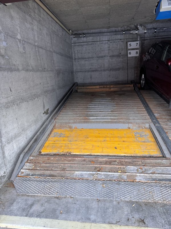 Einstellplatz für ein Fahrzeug in einem Doppelparker.