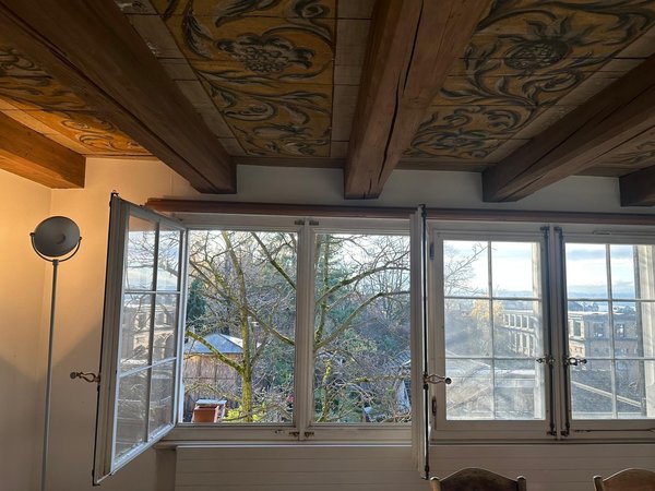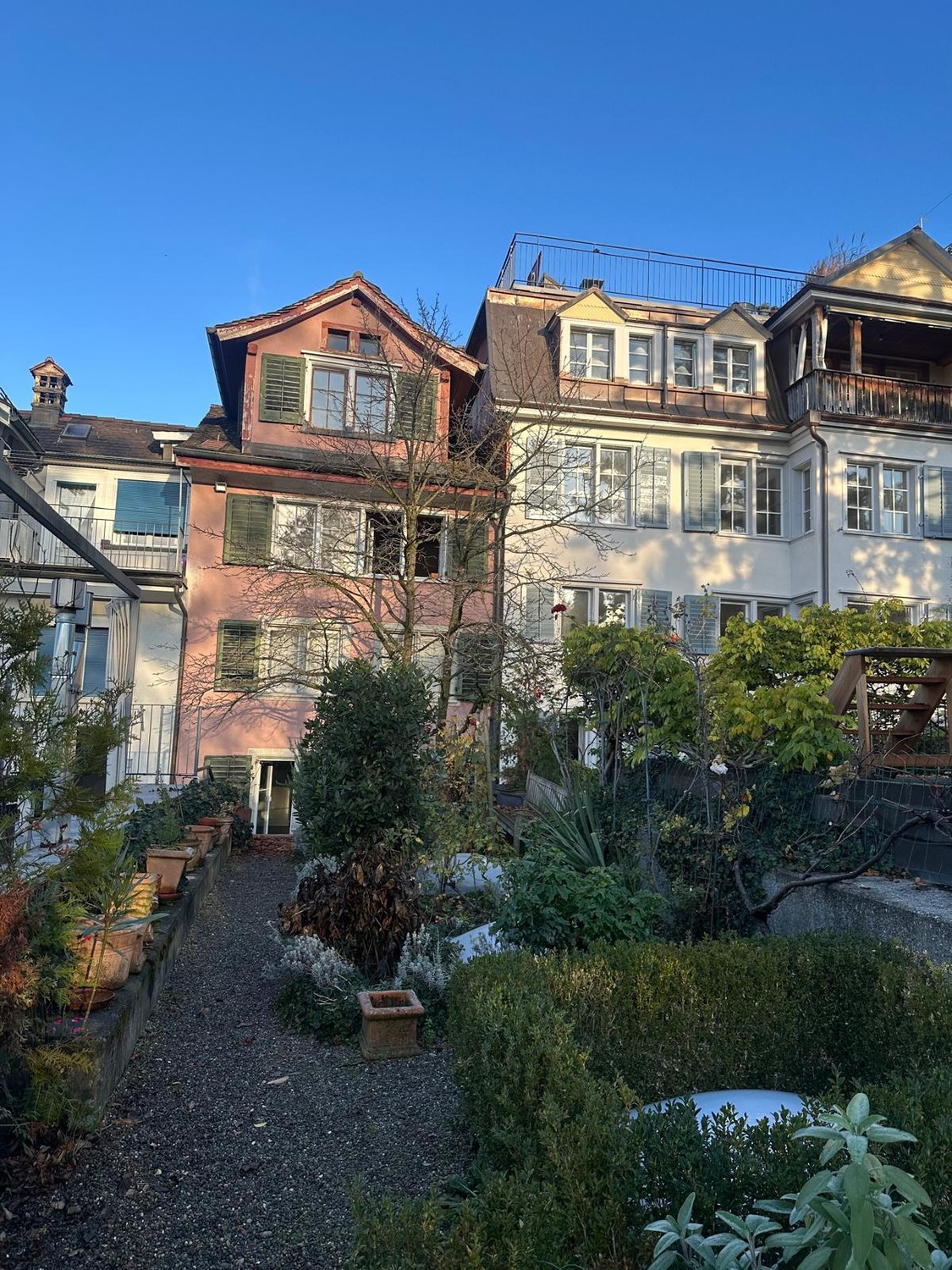 Das Studio liegt im dritten Stock eines wunderschönen Hauses mit Garten in der Zürcher Altstadt. Es hat einen modernen Innenausbau und dabei aber seinen historischen Charme mit Details wie Kachelofen, Decken- und Wandmalereien behalten. Es ist sehr hell, hat grosse Fenster in Richtung Süd-Ost (in den Garten) und in Richtung Nord-West (in Richtung Abendsonne). Zum Studio gehört eine eigene Küche dazu, mit welcher eingerechnet es ca. 45m2 misst.