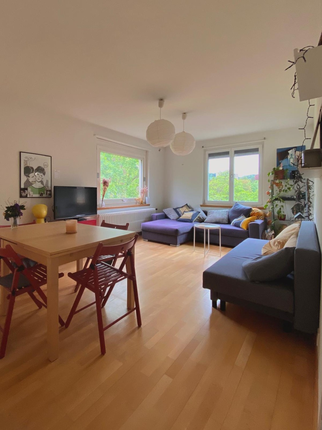 We have been friends for a long time and are looking for someone who enjoys living in a shared flat: having sofa conversations, having dinner together, or sharing a glass of wine on the terrace, while also being respectful of shared spaces and personal time. You’ll see that we both have quite independent lives, but we’re always open to new people and spontaneous plans. We like discovering new places, enjoying Zurich, and spending time in nature whenever we can, but we also value having a calm and comfortable home.