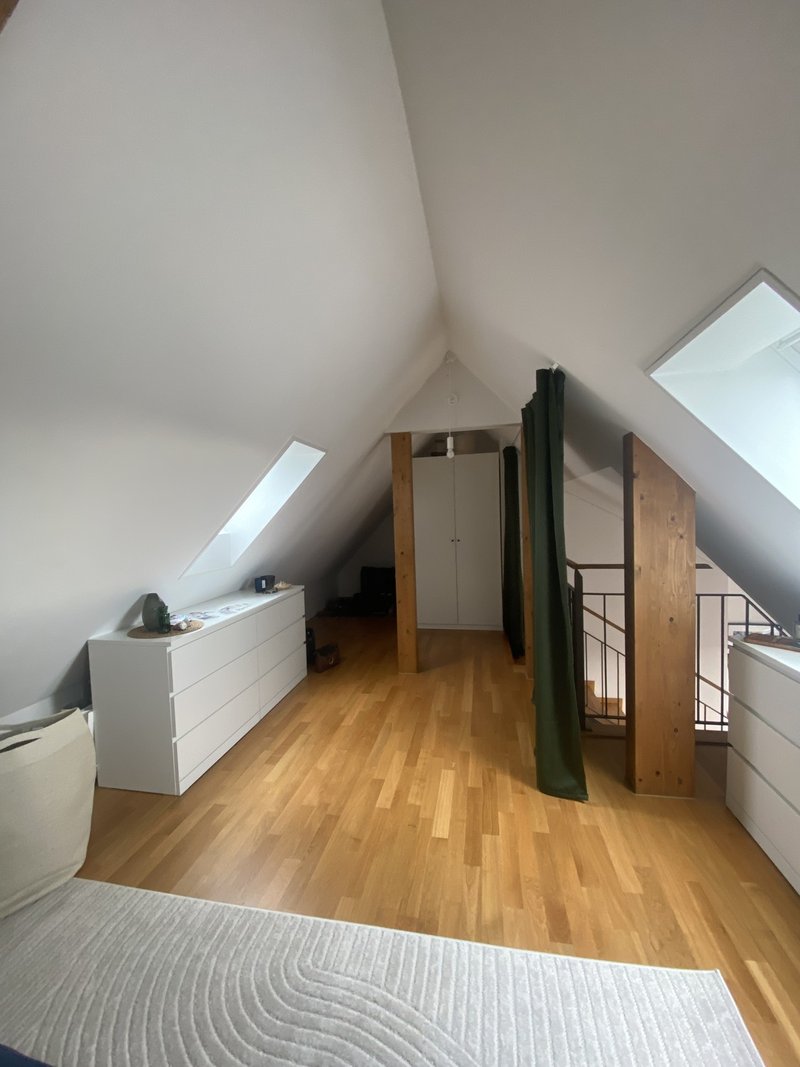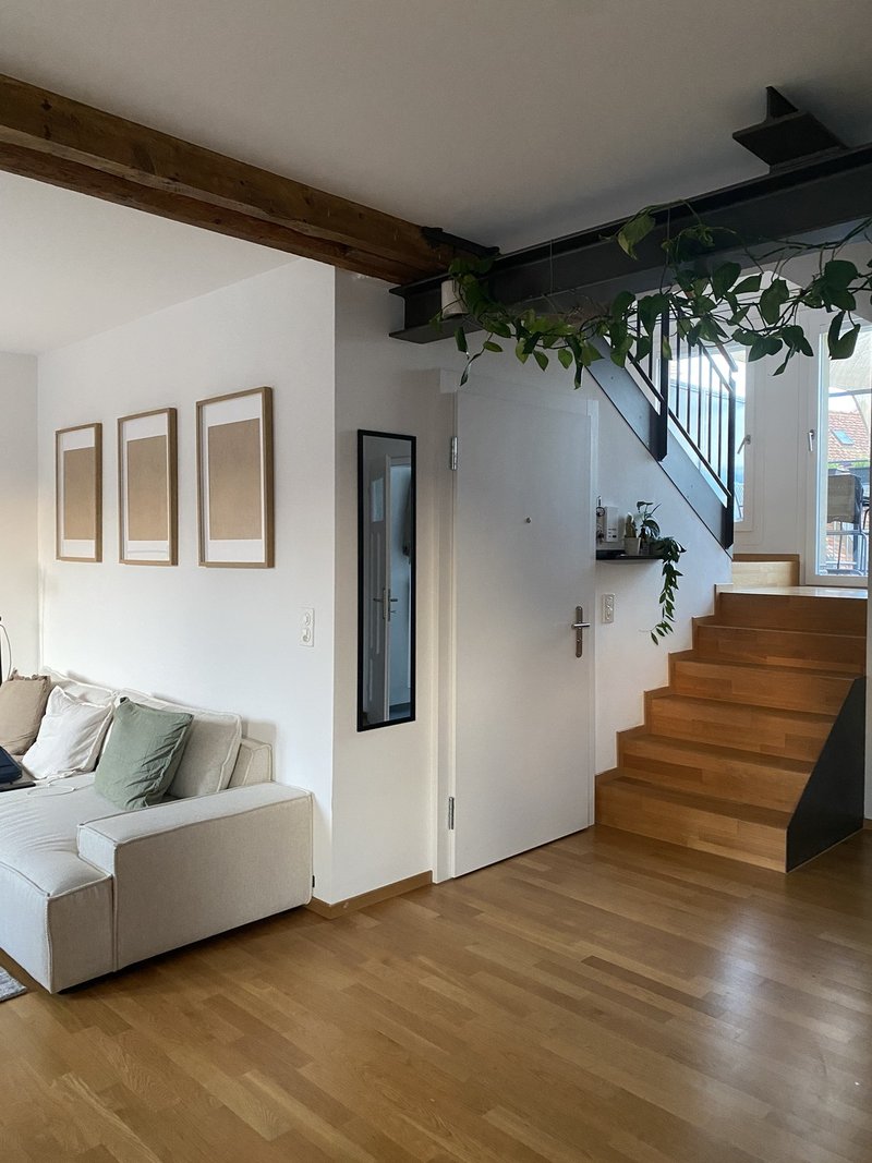 Ich vermiete das Obergeschoss der Maisonette-Wohnung in einer 2er-WG im Herzen des Kreis 3, beim Lochergut, direkt neben der beliebten Gelateria di Berna. Die Wohnung (ca 75m2) befindet sich im 5.OG ohne Lift, tägliches Workout ist inklusive. :)