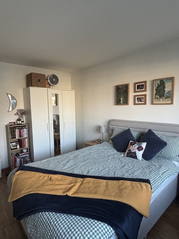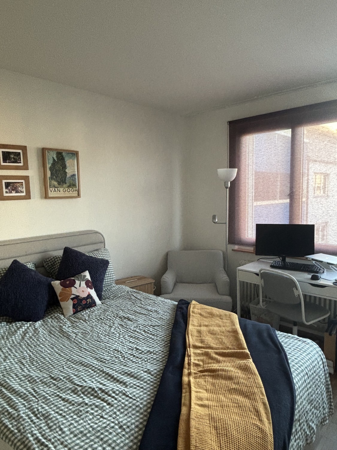 Your room is approximately 13.5 m² and comes with a shared bathroom, which you would share with Lars. The washing machine and tumbler are located in the second bathroom and are of course available to everyone. We also have a lovely cleaning lady (Francisca) who cleans the common areas once a week.