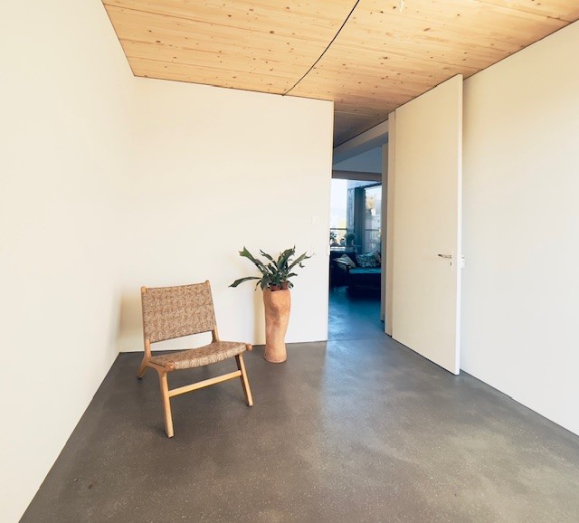 Es handelt sich um einen modernen zweistöckigen Neubau in Holz (4. und 5. OG).