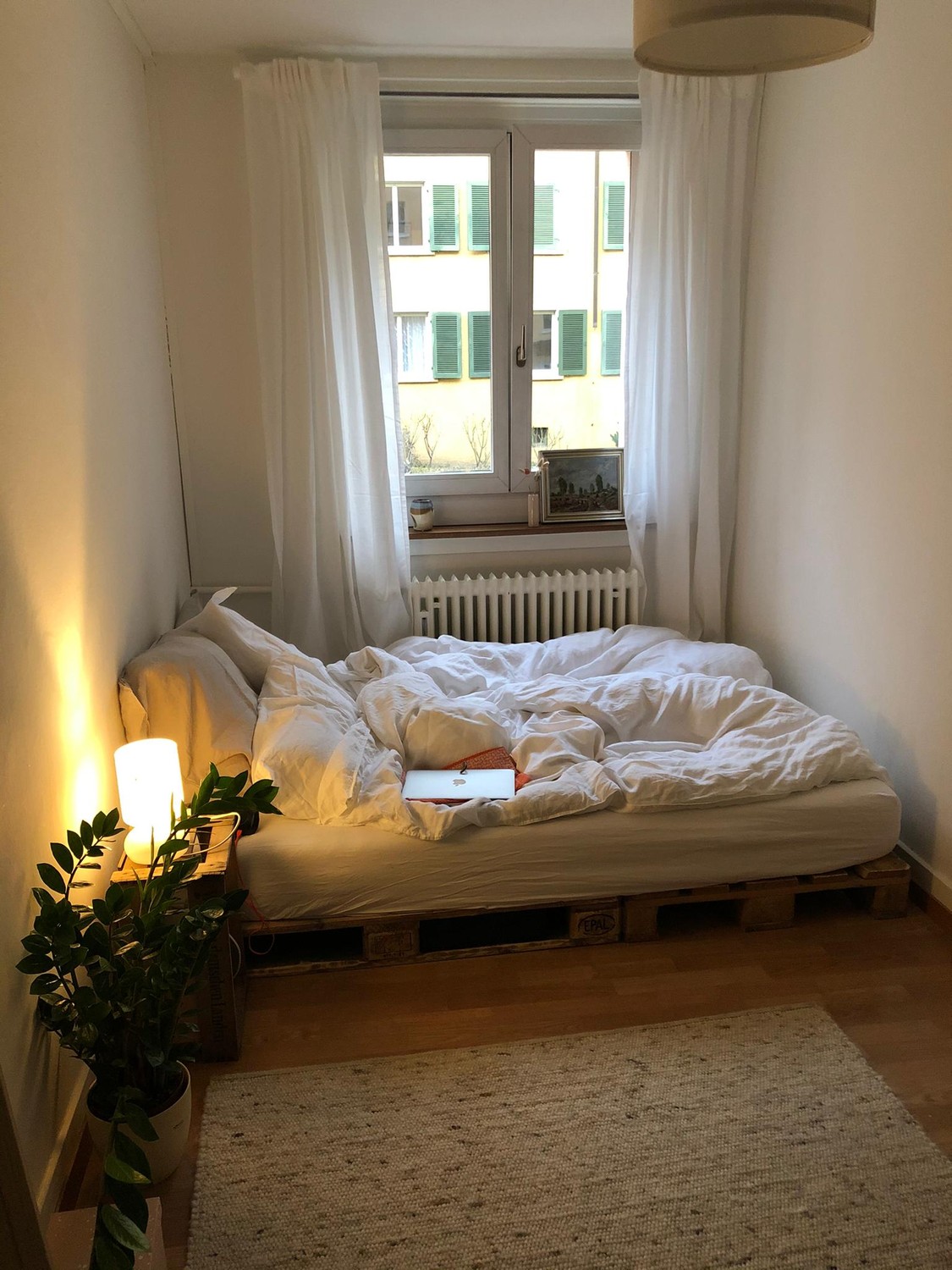 Das Zimmer ist ca. 11 m2 gross und unmöbliert. Bei Interesse kann eine Kleiderstange übernommen werden. Die Wohnung hat ein grosses Wohnzimmer mit einem Balkon, eine Küche mit Geschirrspülmaschine und ein Bad mit Badewanne. Ein Estrich- und ein Kellerabteil sind vorhanden.