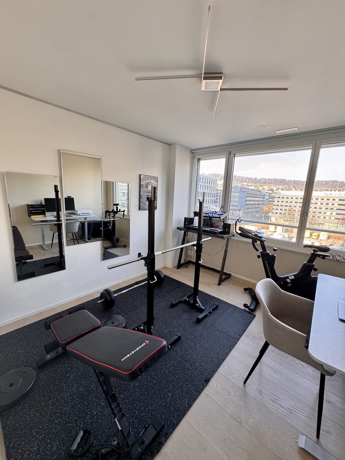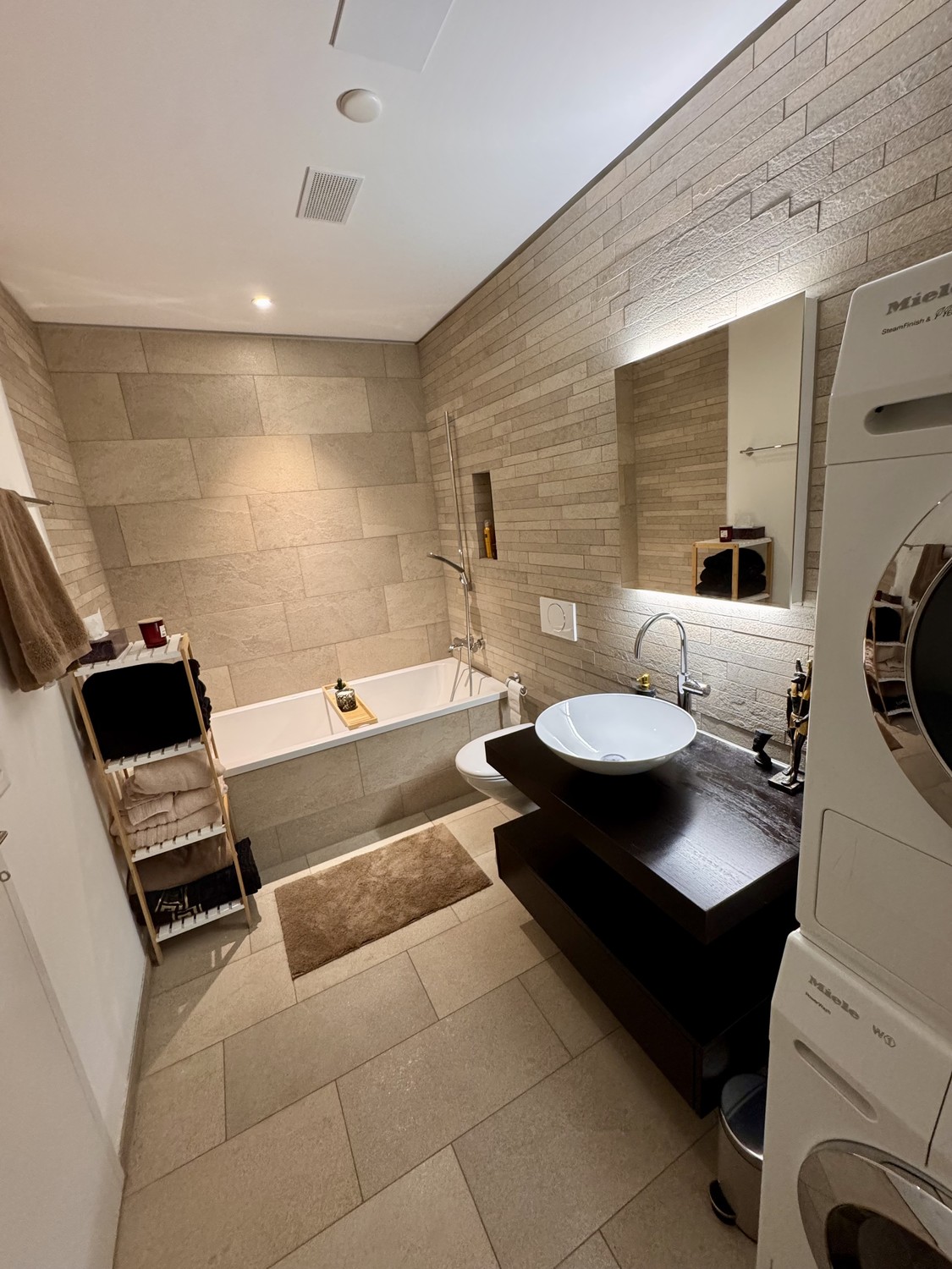 Es ist alles da - 2 Badezimmer, Ankleidezimmer, Home-Gym / Arbeitszimmer (höhenverstellbares Pult, Drucker & Screen zum Gebrauch), Waschmaschine & Trockner, Loggia mit wetterfestem Aussensofa (Grill falls gewünscht), grossem Esstisch, offener Küche und – unser legendäres Pferd.