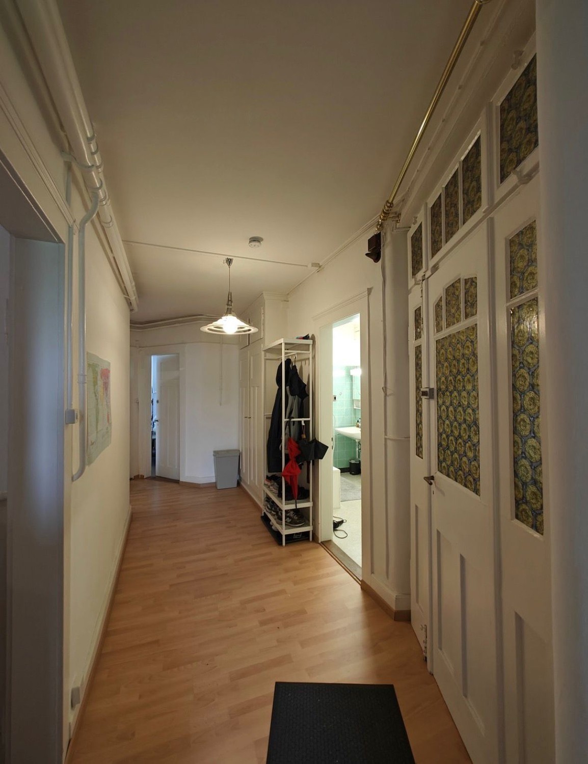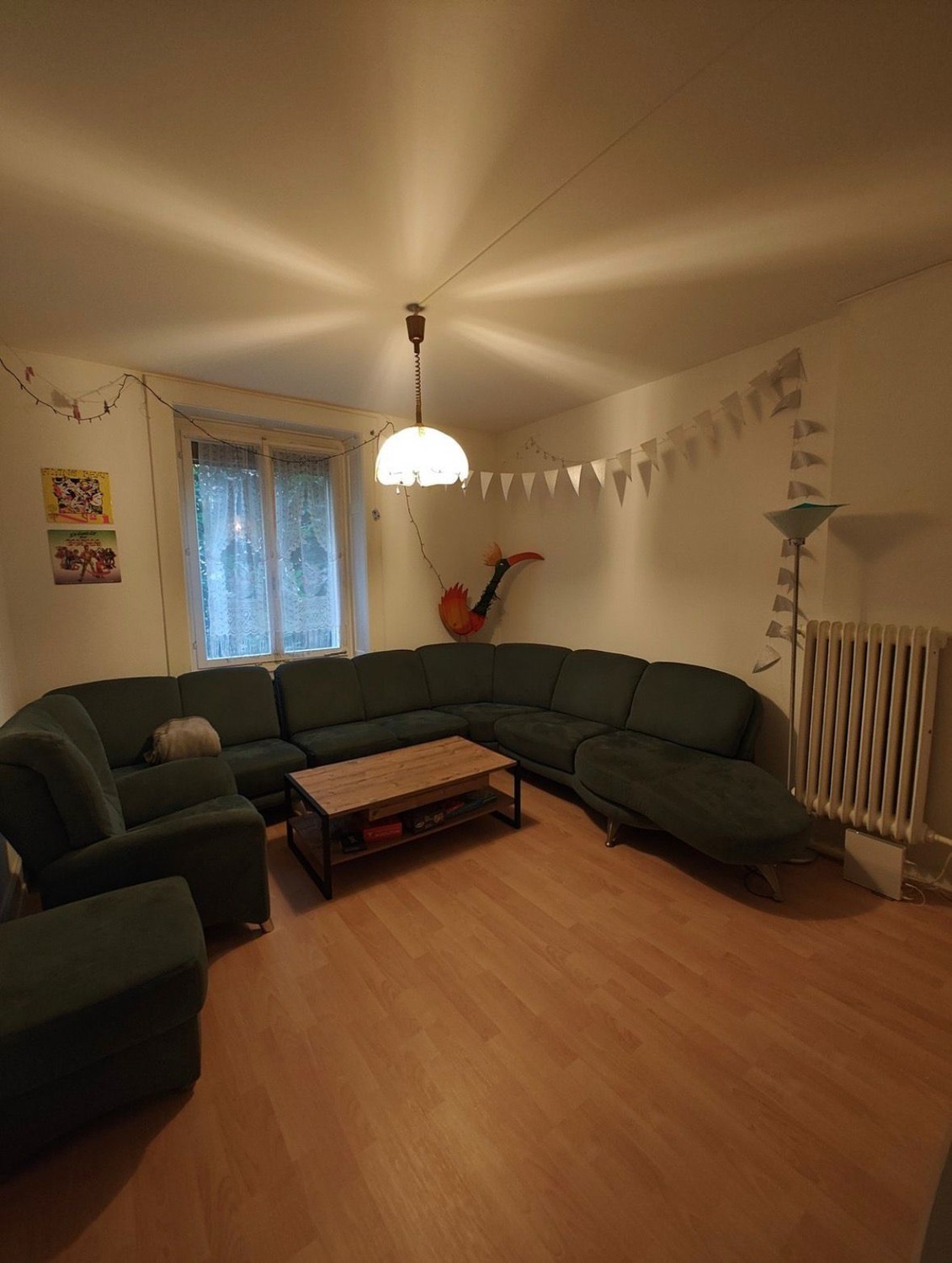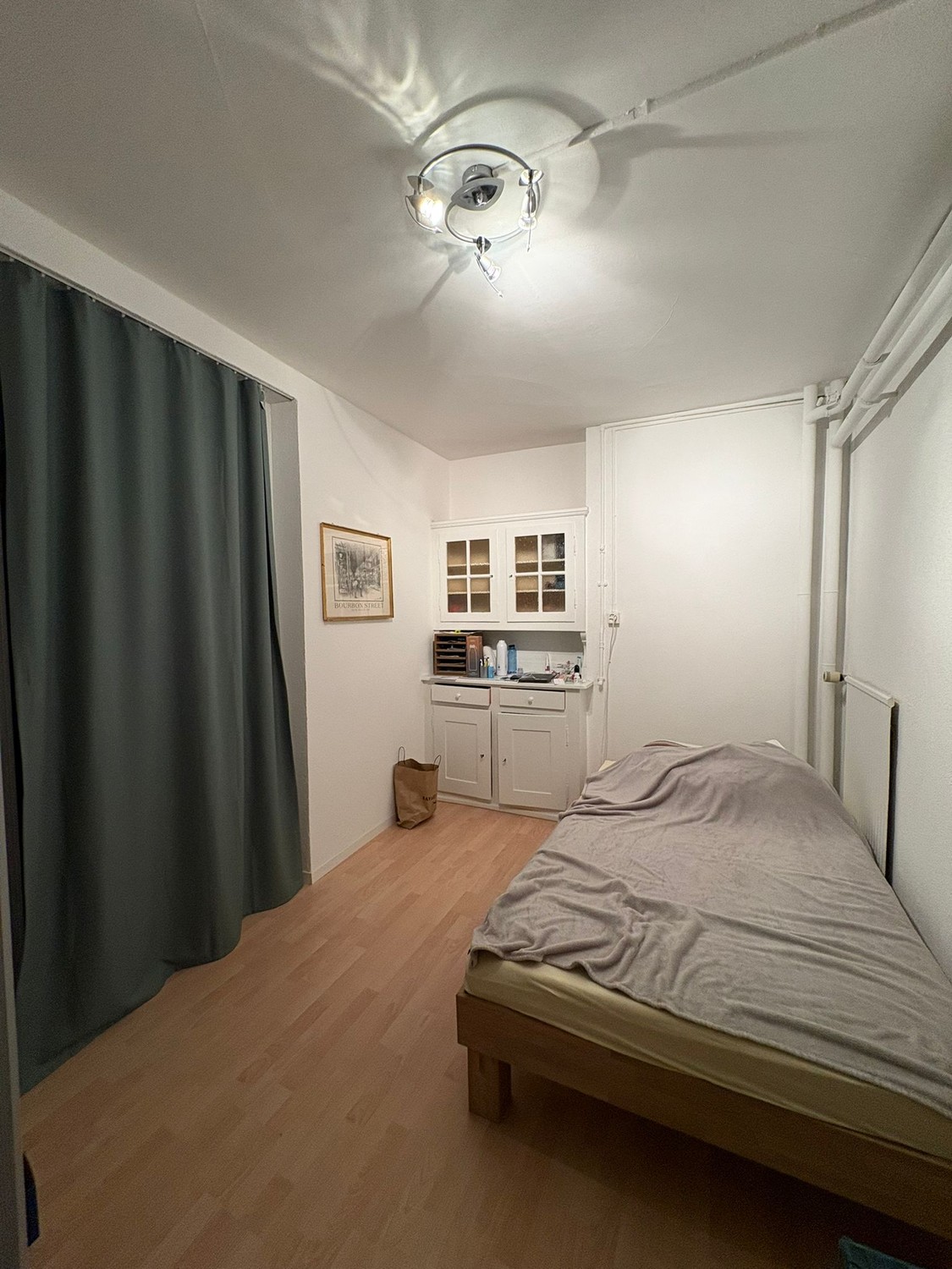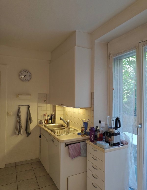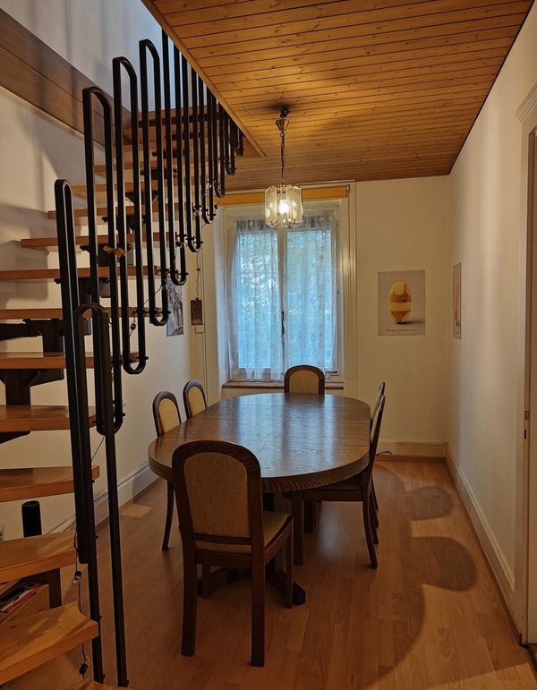 Unsere WG besteht aus zwei Stockwerken mit einer innenliegenden Treppe. In jedem Stock gibt es ein Bad sowie Dusche. Im unteren Stock befinden sich das geteilte Wohn-und Esszimmer sowie die Küche mit Zugang zu einem kleinen Garten. Im Keller gibt es eine Waschmaschine und einen Trockner, der mit einer weiteren Partei geteilt wird. Das Zimmer ist 11 m2 gross und befindet sich im zweiten Stock. Das Bett und der Kleiderschrank können bei Bedarf kostenlos übernommen werden. Es hat ebenfalls einen kleinen Einbauschrank sowie Ablage. Die Miete beträgt 850 CHF zuzüglich 100 CHF Nebenkosten (total 950.-).