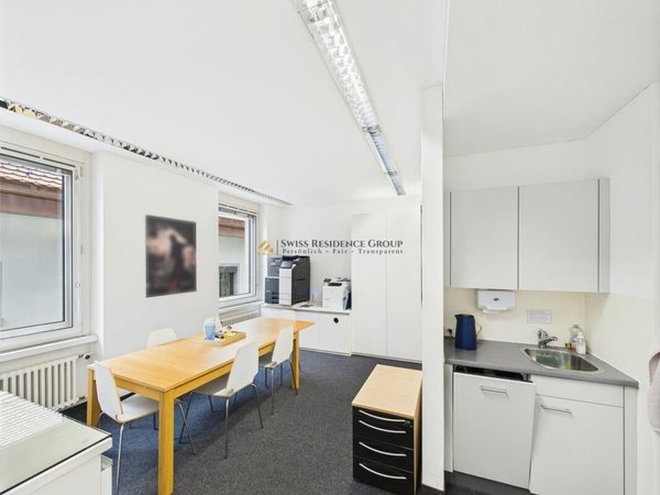 Mit 60.1?m² Bürofläche plus 34.4?m² gemeinschaftlicher Nebenfläche (Sitzungszimmer, Küche, 2 WCs) eignet sich das Objekt optimal für 5 bis 10 Arbeitsplätze. Hohe Decken (2.70?m), grosse Fenster und ein angenehmes Raumgefühl bieten ein produktives und repräsentatives Arbeitsumfeld. Der Lift sorgt für bequemen Zugang.