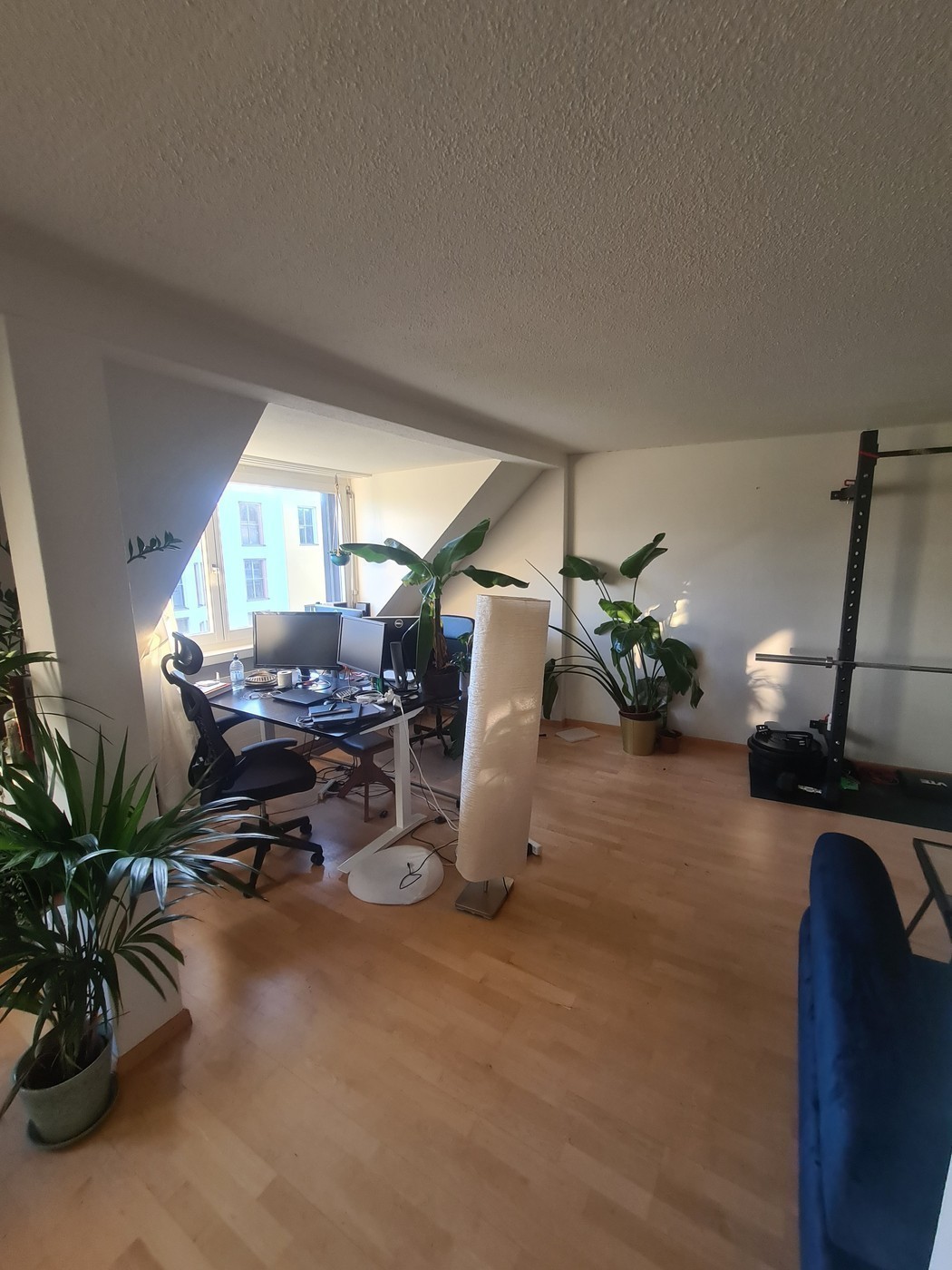 The Flat is insane: Top Floor, it is huge, super bright with windows everywhere, 3 Bathrooms, Rooftop, Fire Place, Kitchen with Bar, own washing machine and dryier and 1 min next to the lake - We see it from the apartment ;)