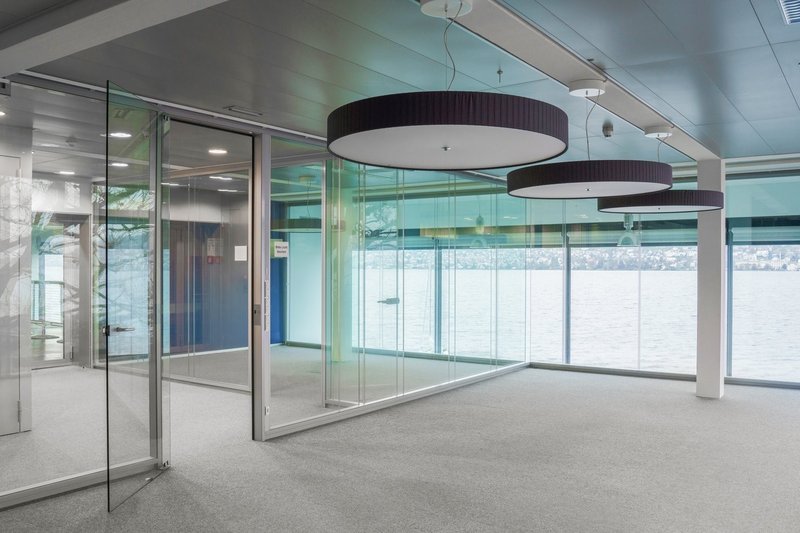 Die Flächen werden über den verkabelten Doppelboden (Kat. 7) belüftet und verfügen über Besprechungsräume, Anschlüsse für Kaffeeküchen und WC-Anlagen. Die Heizung sowie Kühlung erfolgt über Konvektoren und klimaneutral mit Wasser aus dem Zürichsee.