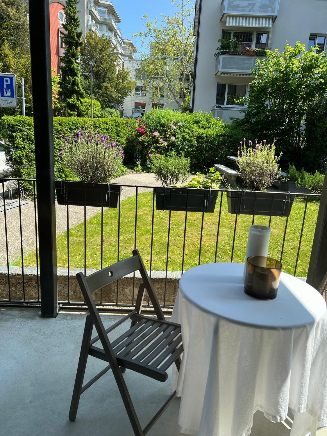 I really love(d) the green, quiet, yet central location. It's close to the university hospital, just 4 minutes’ walk to Hottingerplatz with its cafés and little shops, 8 minutes’ walk to the Kunsthaus and the theatre, and around 20 minutes on foot to the lake at Bellevue. You can also reach the city centre in 15–20 minutes on foot or 10 minutes by tram, and the endless Dolder forest is right nearby for a quick escape into nature. The flat even comes with a sun-kissed balcony and a shared garden for all residents in the building.